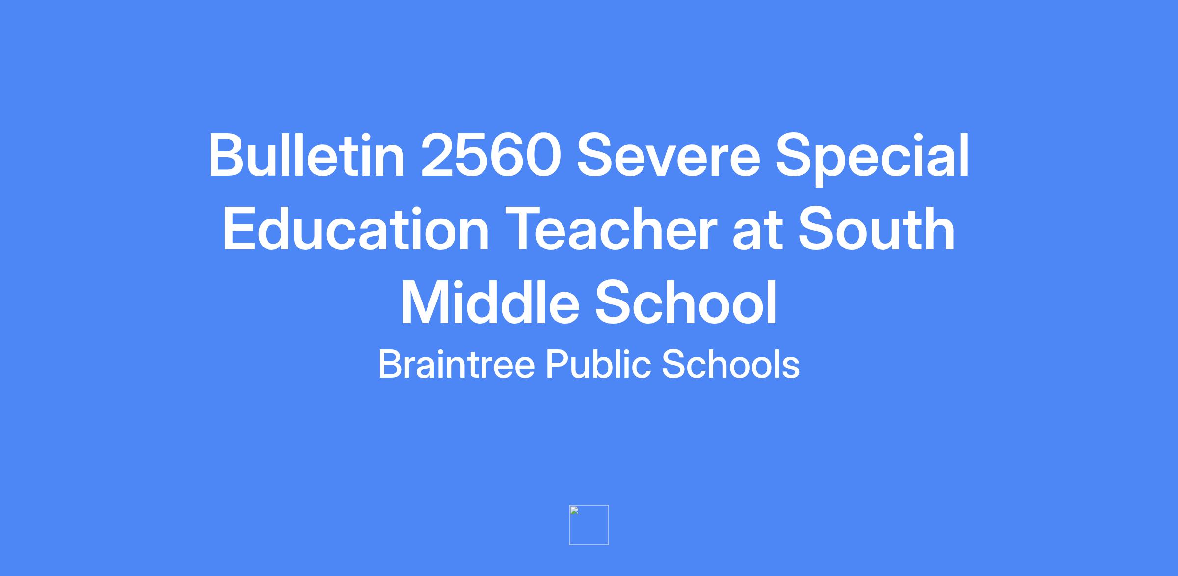 The Braintree Public Schools seeks a collaborative, creative, and kind severe special education teacher to join our South Middle School team. The classroom is comprised of students grades 5-8 who have behavioral, sensory, and educational needs related to their autism spectrum disorder. Experience using applied behavior analysis methodology, positive behavior supports, and data collection preferred. Responsibilities include curriculum implementation, intake evaluations, IEP writing, and progress reporting. Candidates must be MA DESE certified in Severe Special Education and have the SEI endorsement.
