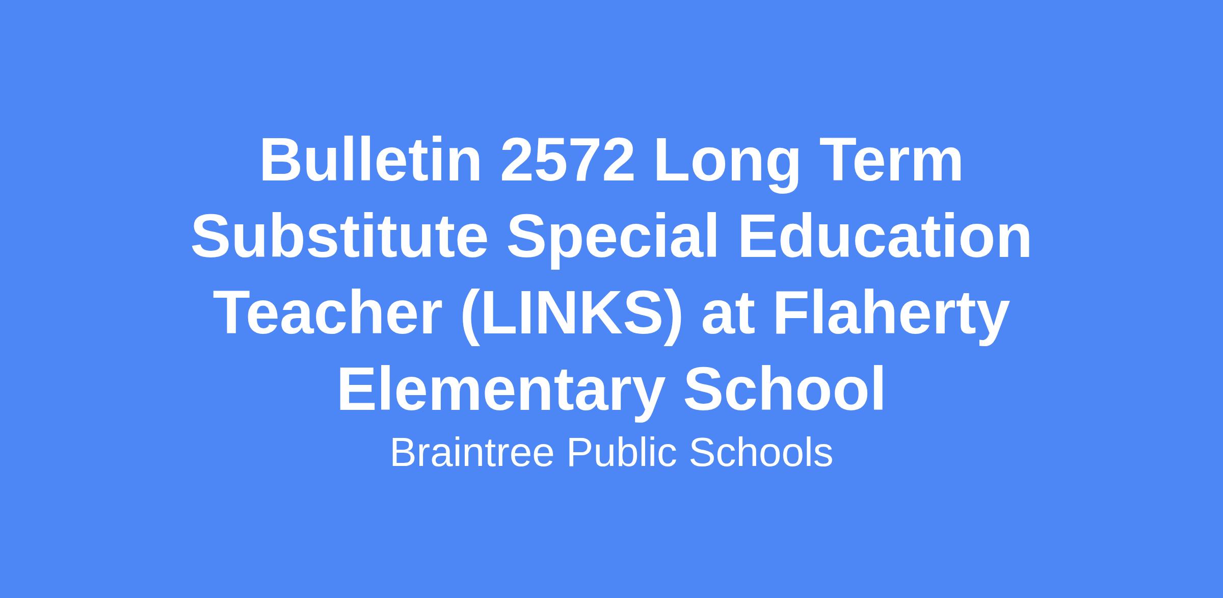 The Braintree Public School District is seeking a Long Term Substitute Special Education Teacher for the Grade 1 LINKS Program at Flaherty Elementary School. This position would cover a leave of absence from approximately the end of April through the end of the 2026 School Year. There is also the option to continue coverage in September.