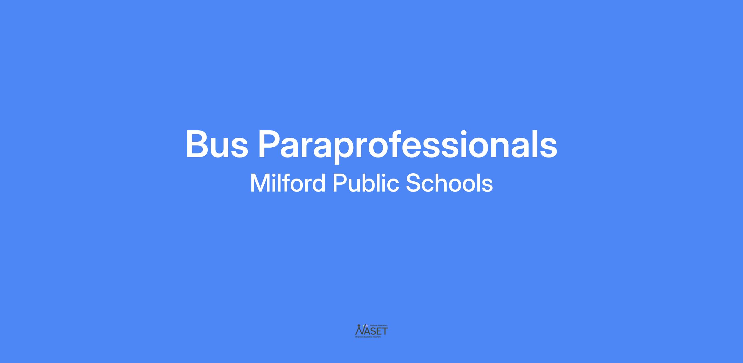 Bus Paraprofessional needed to maintain student safety on the school bus, and to be flexible and willing to work with students with disabilities.