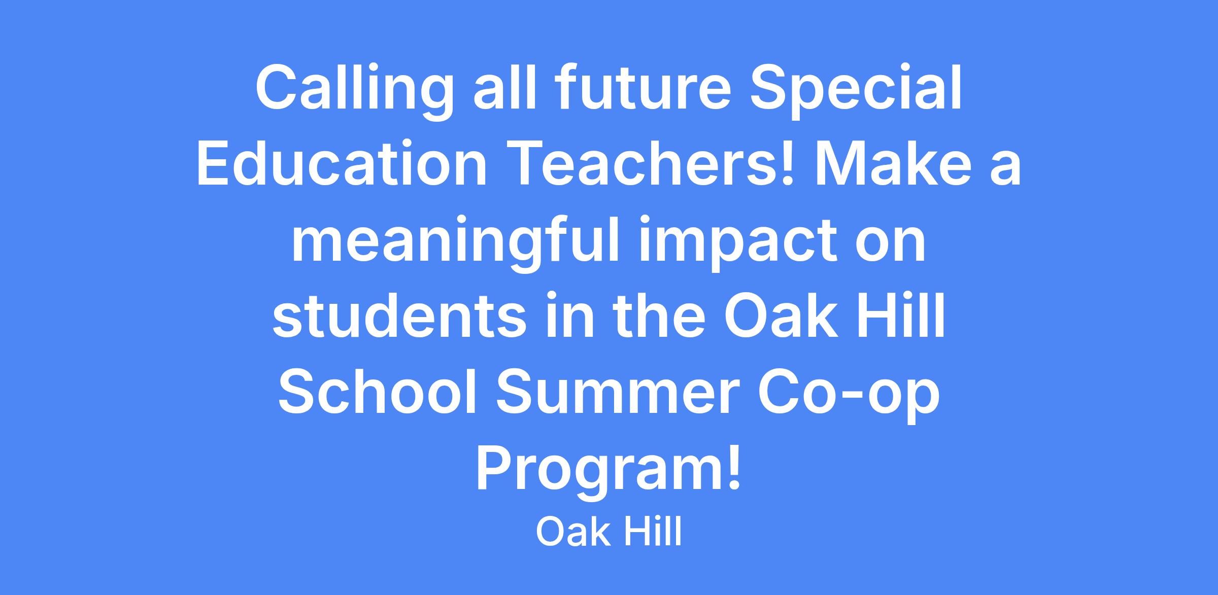 Oak Hill is looking for enthusiastic and reliable individuals to join our summer co-op program , from June 1, 2026 until August 1, 2026.