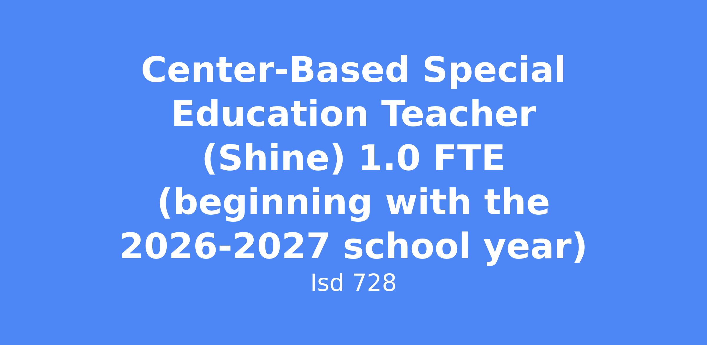 Center-Based Special Education Teacher (Shine) 1.0 FTE (beginning with the 2026-2027 school year)