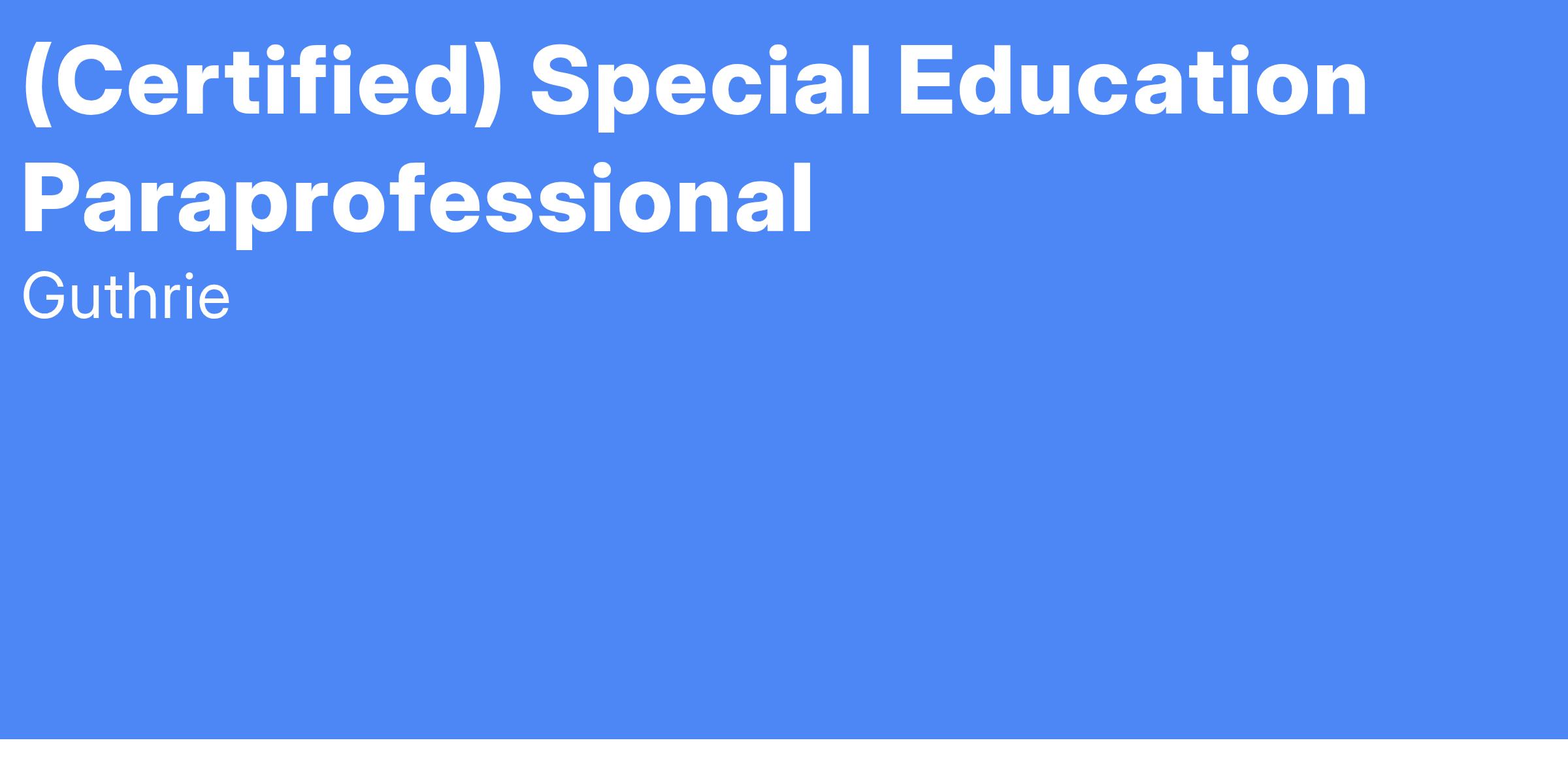 Must be Oklahoma certified. This position is for the 2025-2026 school year. Special Education Paraprofessional.