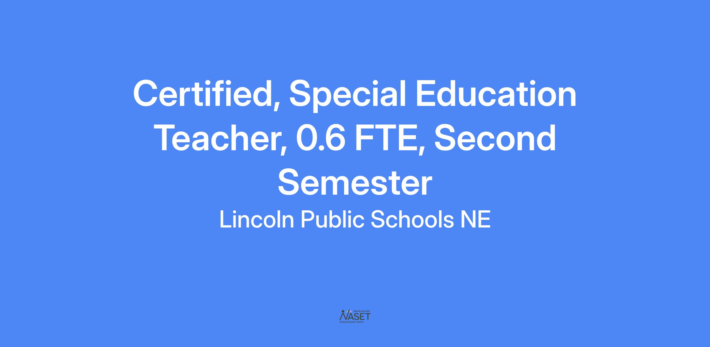 Lincoln Public Schools is seeking a candidate with a commitment to excellence in education. Candidate will possess an ability to establish a strong classroom environment that supports highly engaging instruction. Candidate will need to work collaboratively with multiple team members.