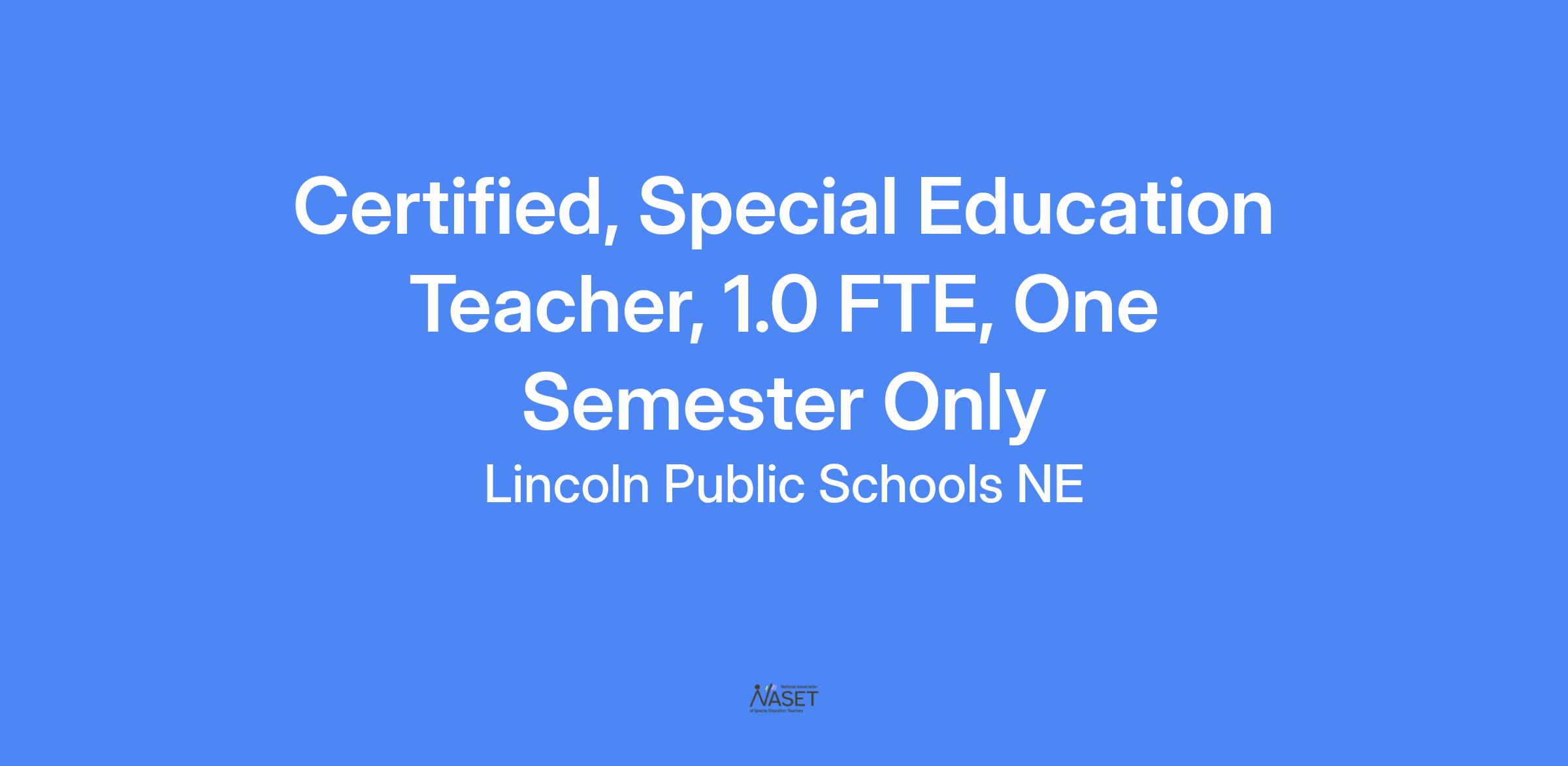 Lincoln Public Schools is seeking a candidate with a commitment to excellence in education. Candidate will possess an ability to establish a strong classroom environment that supports highly engaging instruction. Candidate will need to work collaboratively with multiple team members.