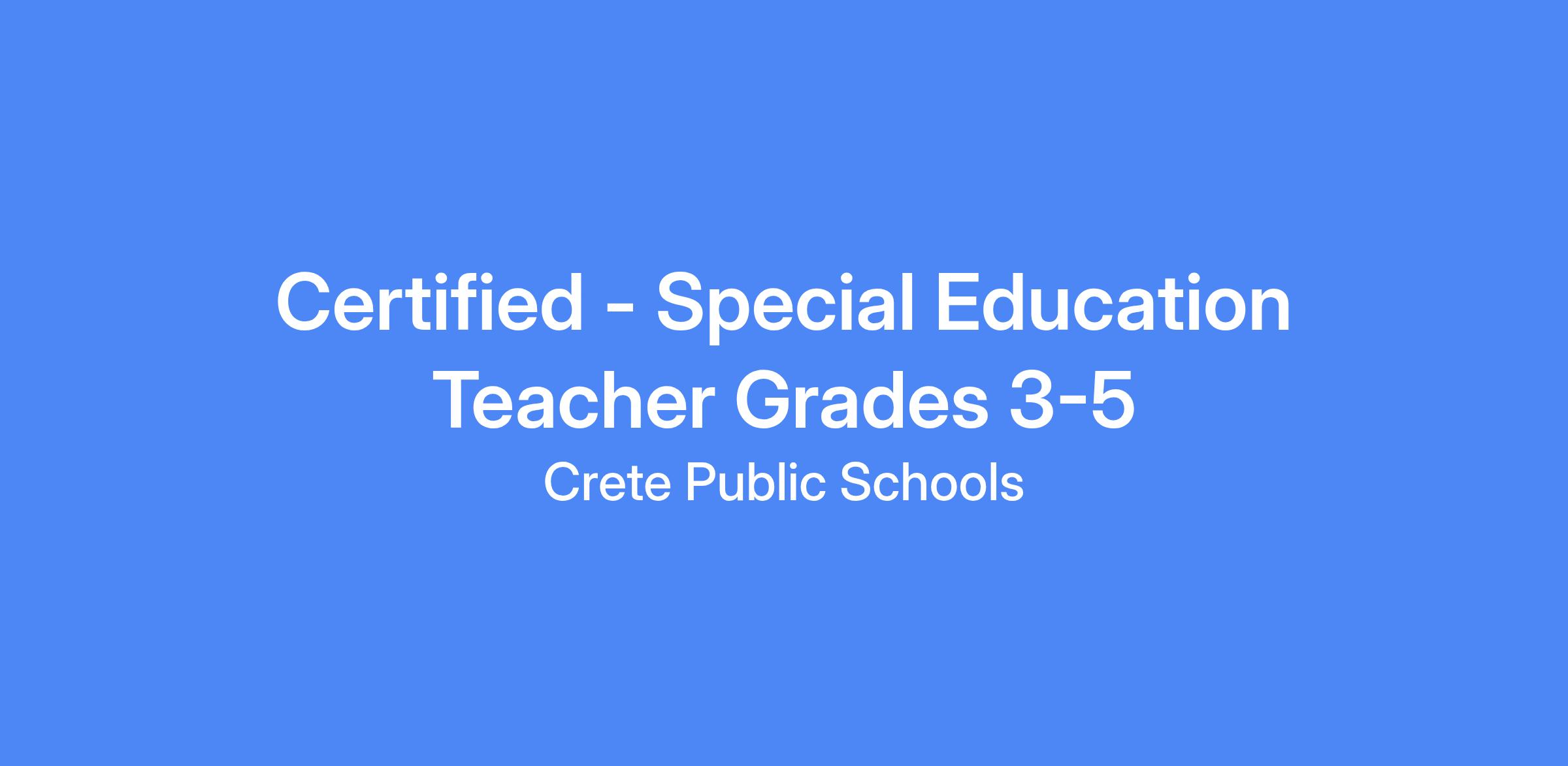 Crete Public Schools is seeking qualified applicants for a Special Education Teacher for grades 3-5 at Crete Intermediate School for the 2026-2027 school year. Benefits include paid health insurance, long-term disability insurance, and personal and sick leave. This position is open until filled.