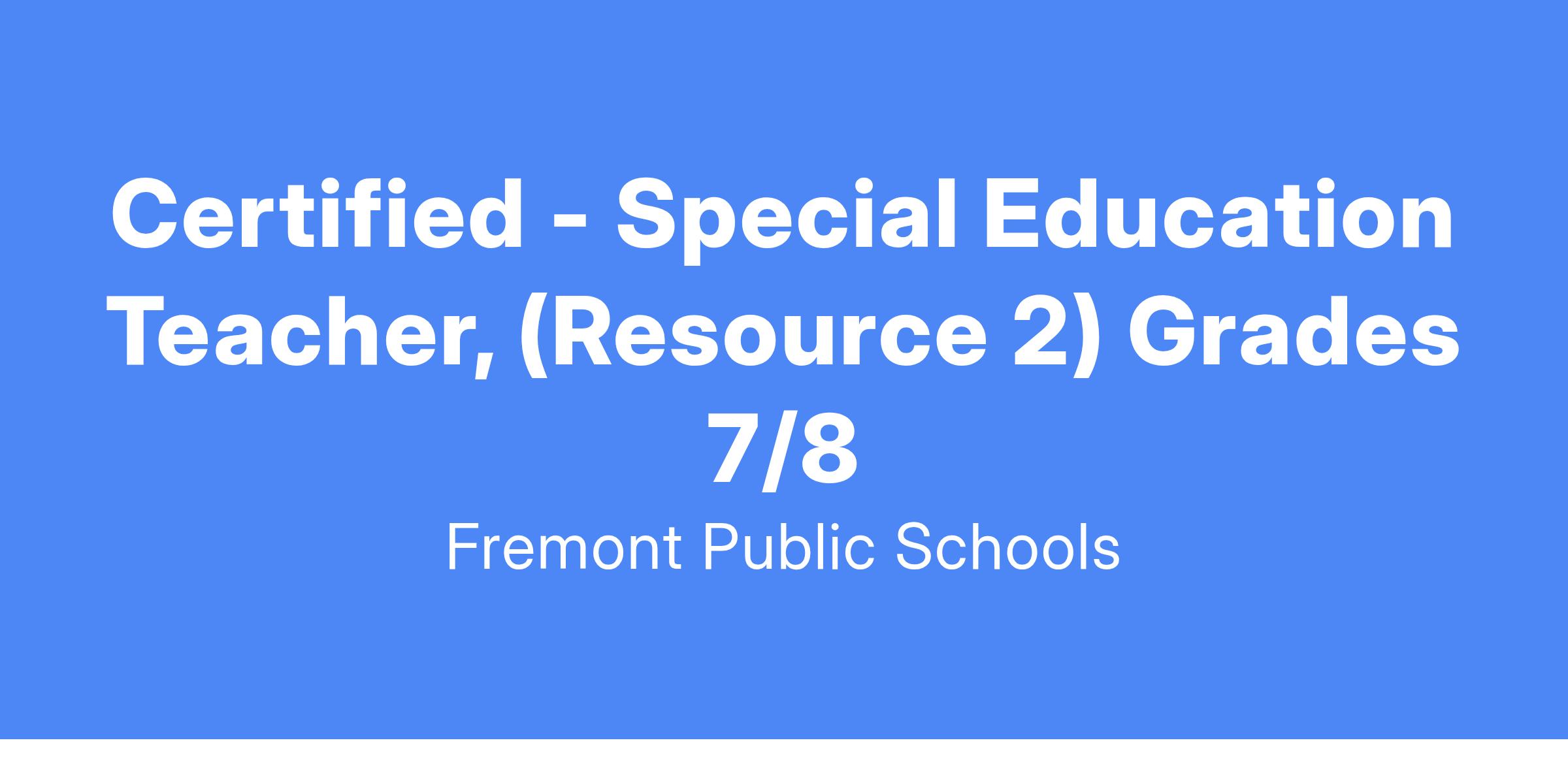 Position: Special Education Teacher (Resource 2)