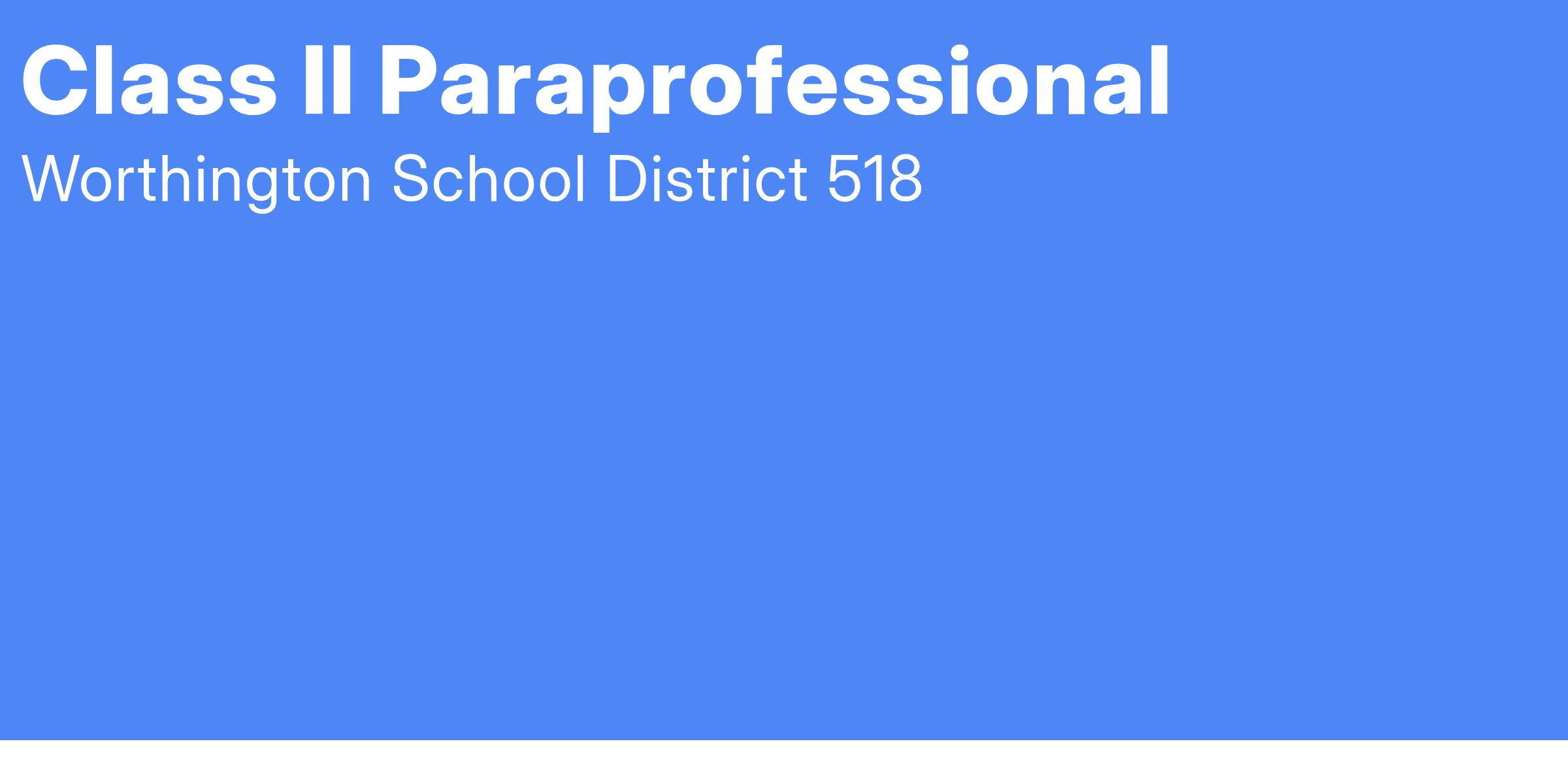 Under the direction of licensed special education teacher and/or related services staff, the Special Education Paraprofessional assists one or more students in accomplishing activities of daily living; instrumental activities of daily living, health related functions; redirection and intervention of behavior; and other tasks as are identified within assigned students’ IEPs. Special Education Paraprofessionals may be assigned to work with students who have special healthcare/medical needs, have behavior intervention plans or require other forms of specialized care. Assists teachers by working with individual students or small groups, and performing related work as assigned. Work is performed under the supervision of the Teacher and the general direction of the building Principal.