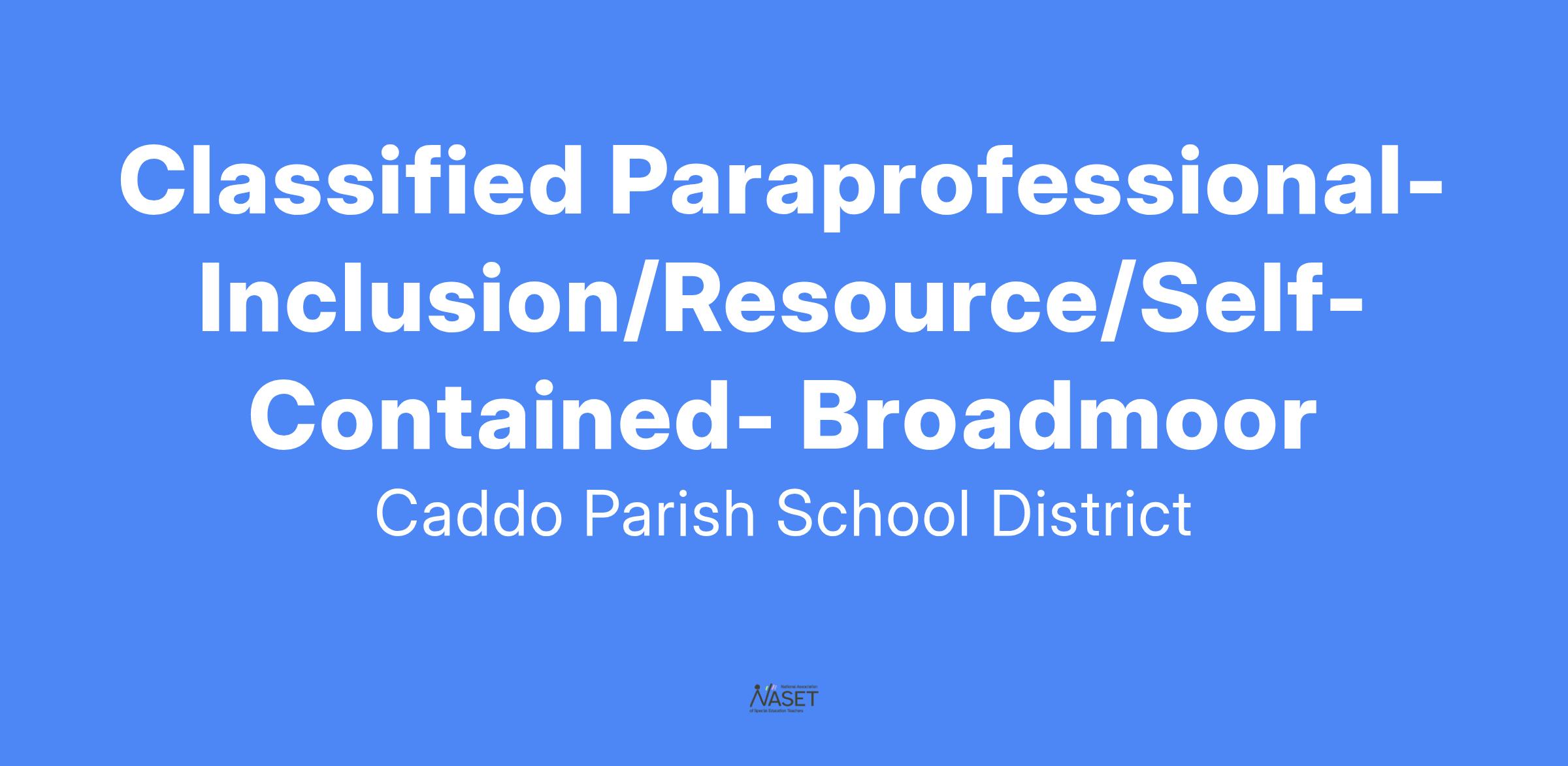 Classified Paraprofessional-Inclusion/Resource/Self-Contained- Broadmoor