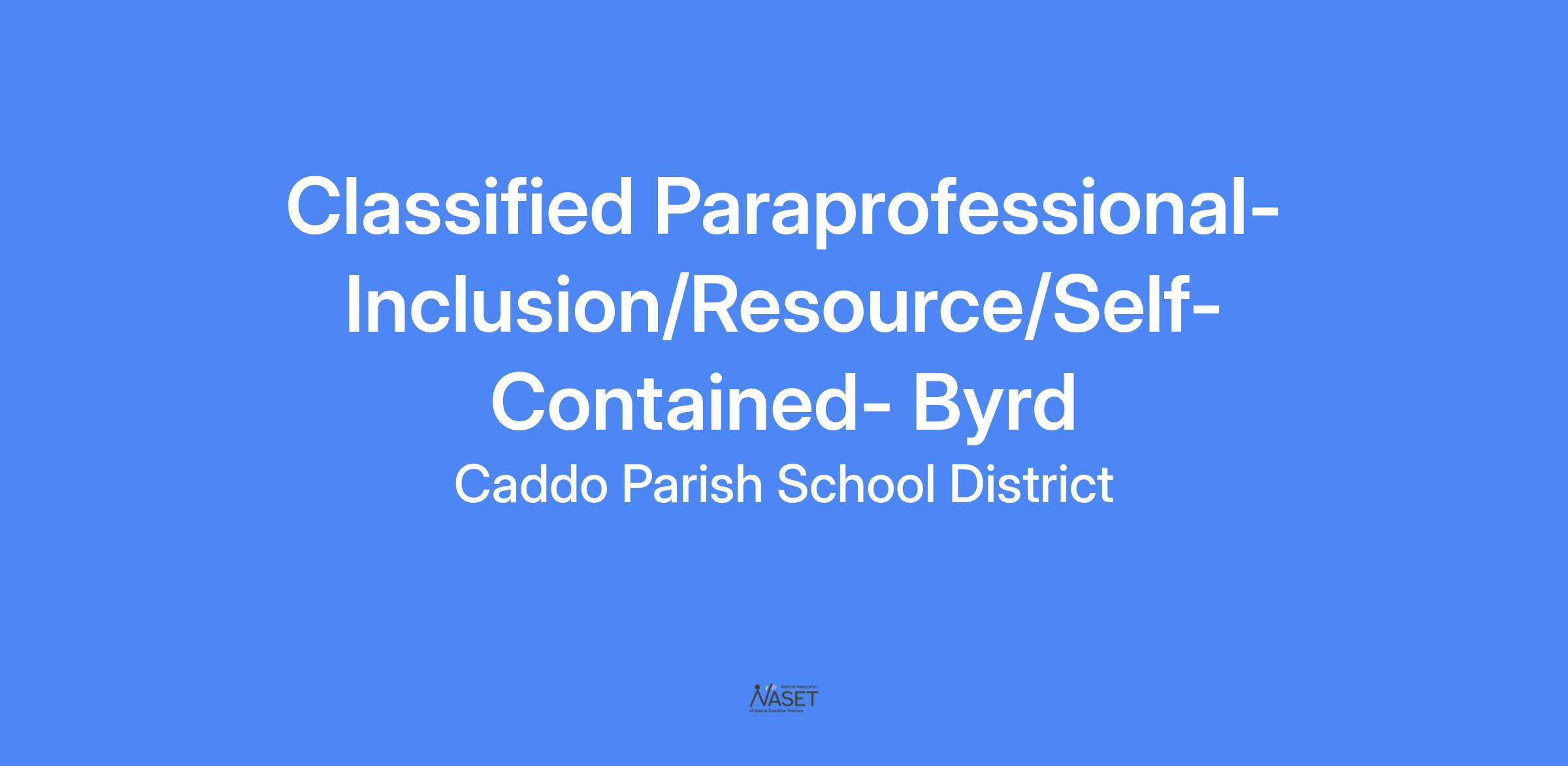 Classified Paraprofessional-Inclusion/Resource/Self-Contained- Byrd