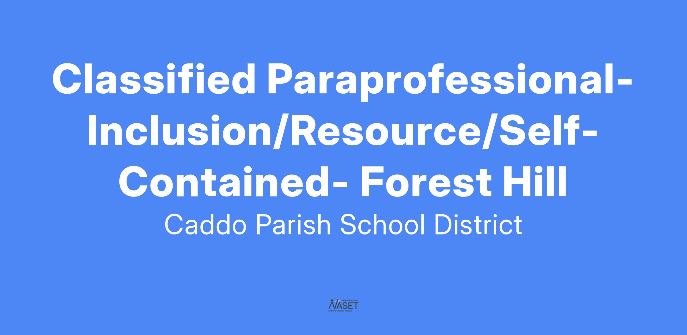 Classified Paraprofessional-Inclusion/Resource/Self-Contained- Forest Hill