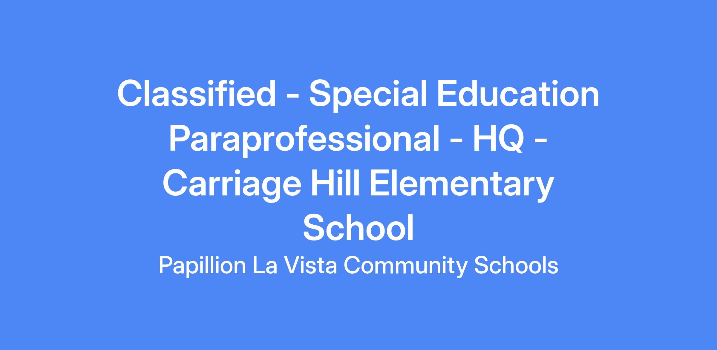 Special Education Paraprofessional - Highly Qualified - Carriage Hill Elementary School