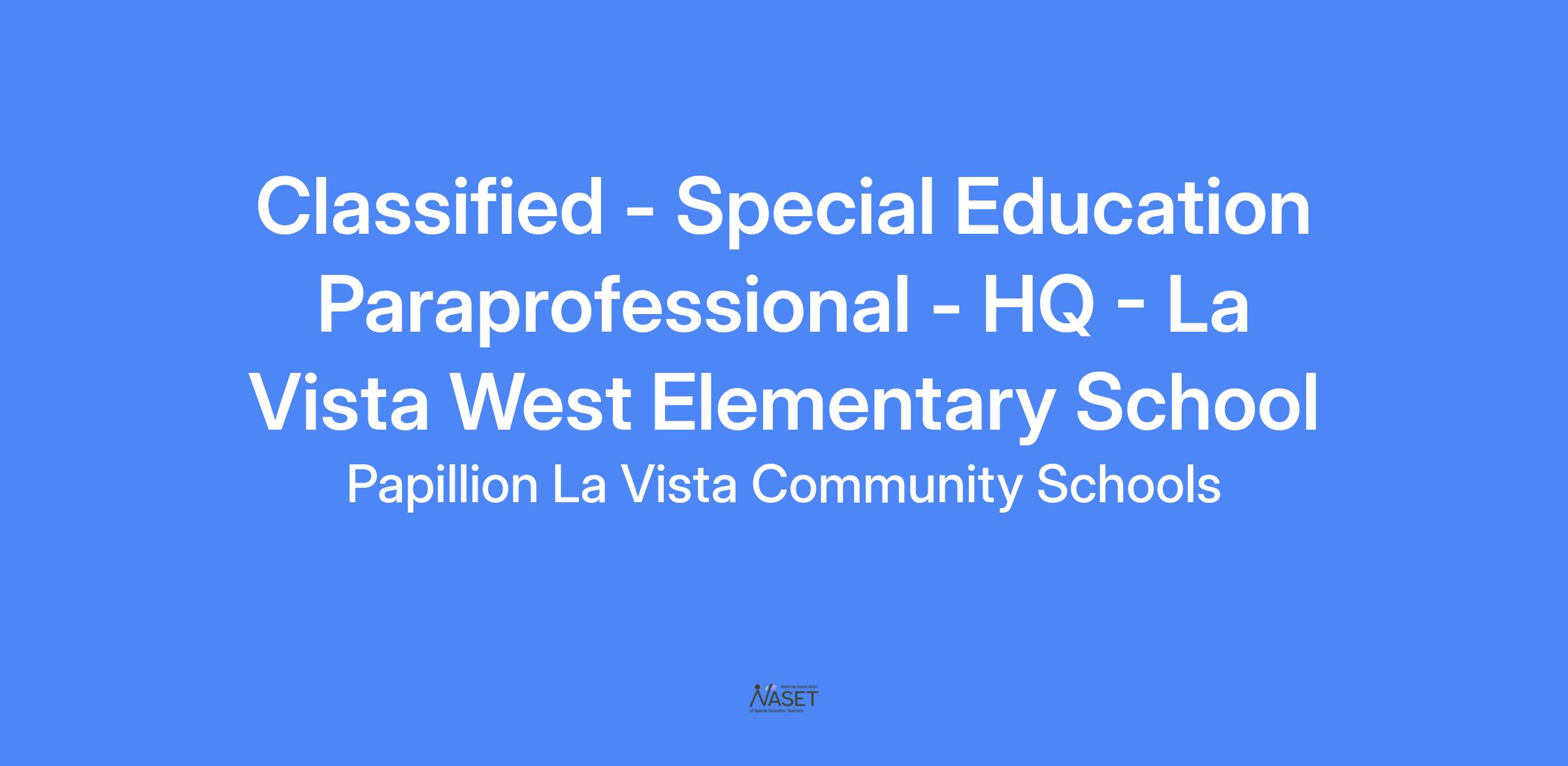 Special Education Paraprofessional - Highly Qualified - La Vista West Elementary School