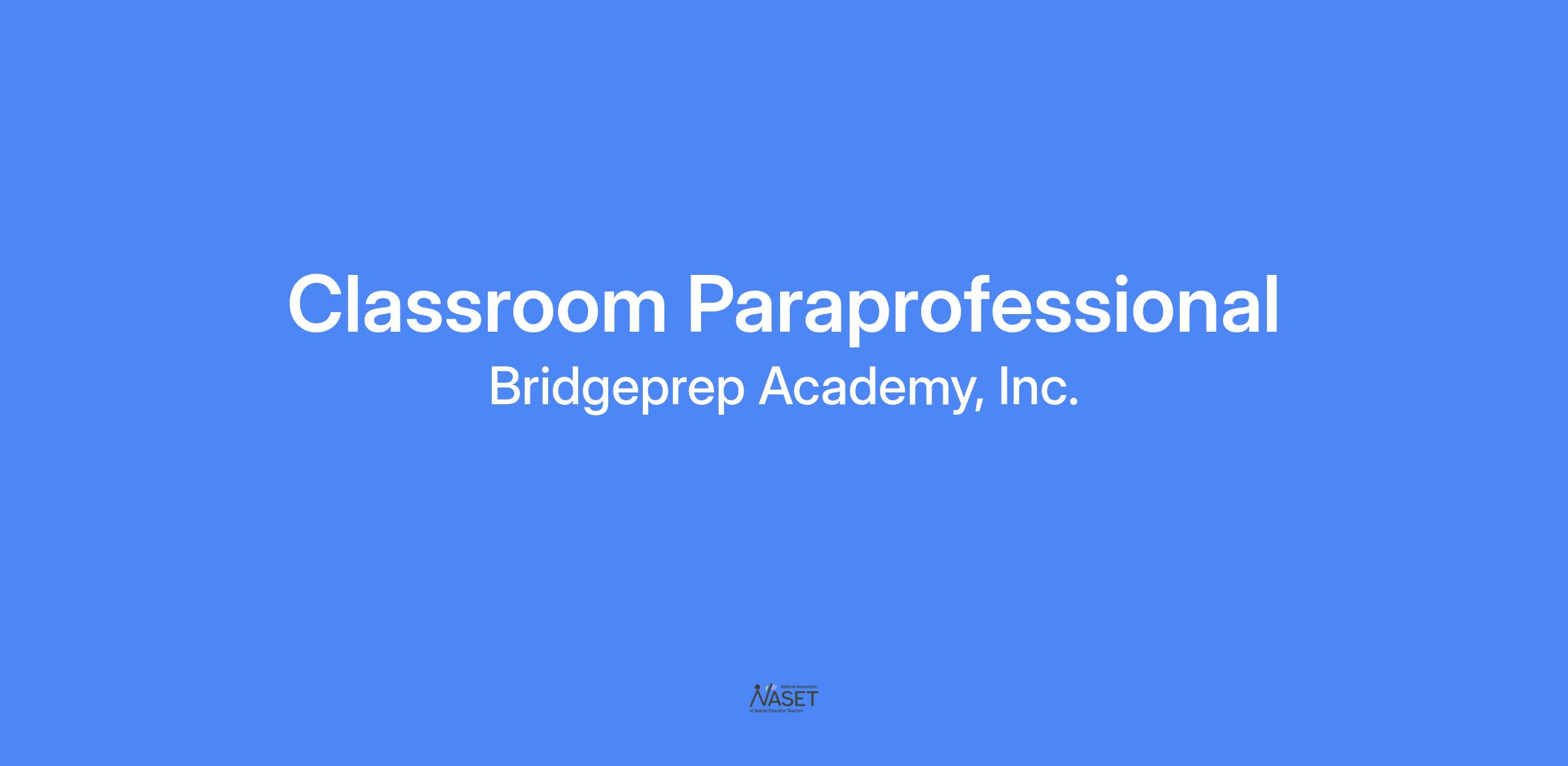 Paraprofessionals support teachers in the classroom to ensure high-quality instruction linked to the school and district strategic goals for all students. They provide a rigorous academic environment that actively engages students, create an inclusive environment that addresses the needs of all learners and supports the social/emotional development of the students.