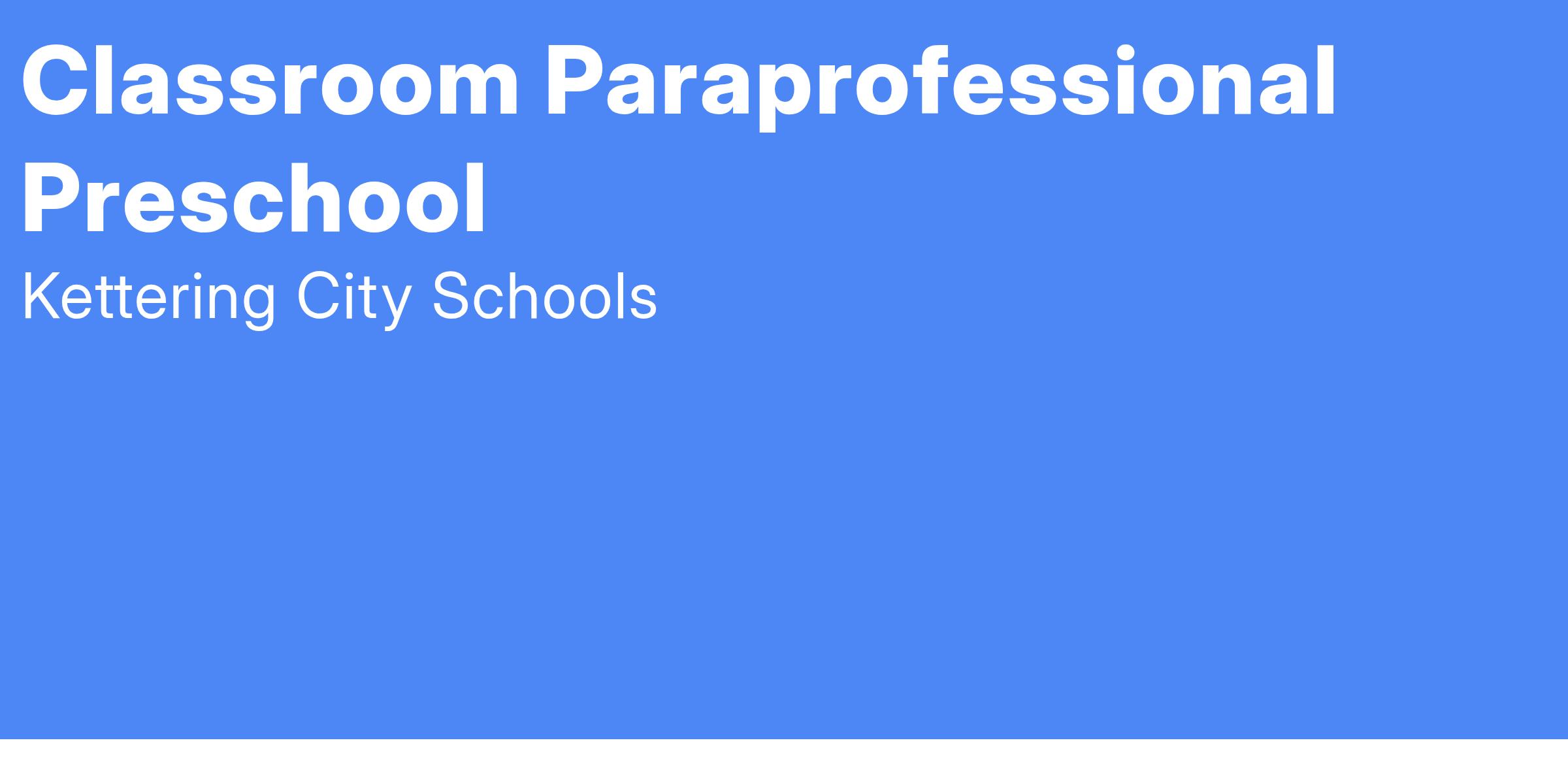GENERAL INFORMATION: This is a public-school preschool position, 7 hours per day, and will include benefits. The person in this position will be working in an Ohio Department of Education Early Childhood Preschool program with an assigned teacher. Early childhood education, training, and experience are preferred.