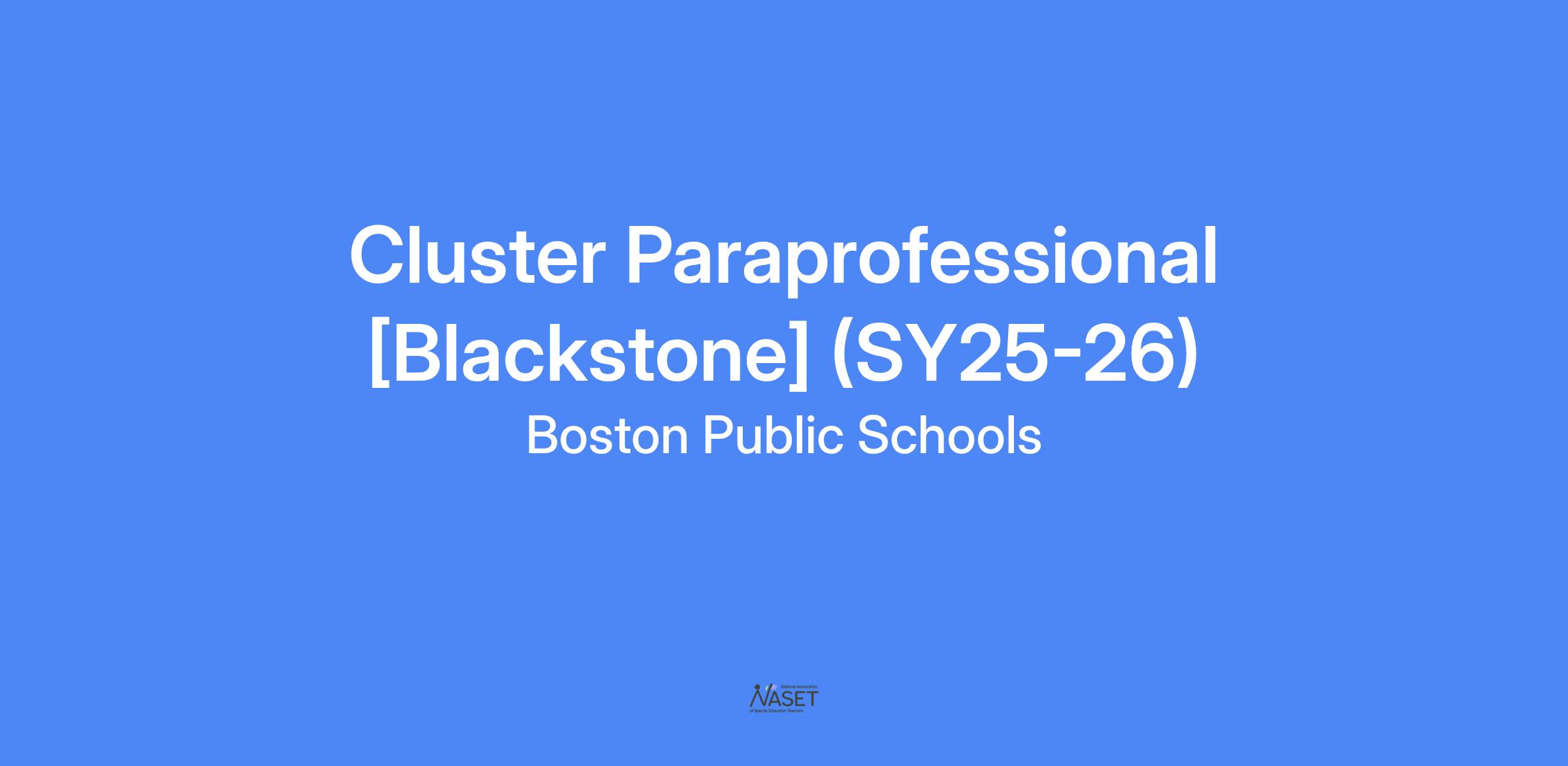 Cluster Paraprofessionals fill short absences created by Classroom Paraprofessionals (e.g. paraprofessionals who work with Kindergarten, Sheltered English Immersion, and Special Education students). The Cluster Paraprofessional will assist the teacher to provide an innovative, high quality education program designed to meet the needs of the children in the Boston Public Schools. Cluster Paraprofessionals will work with school staff to create an educational environment in which quality and continuity are key factors in educating the students of the Boston Public Schools.
