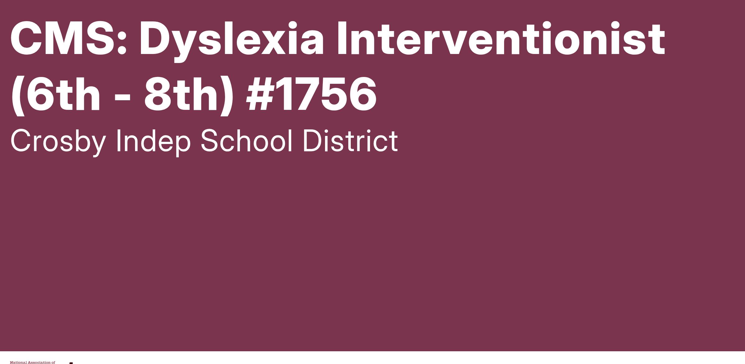 Reports to: Dyslexia Coor/Principal Pay Grade: THS (24/25: $64,650 - $73,685)