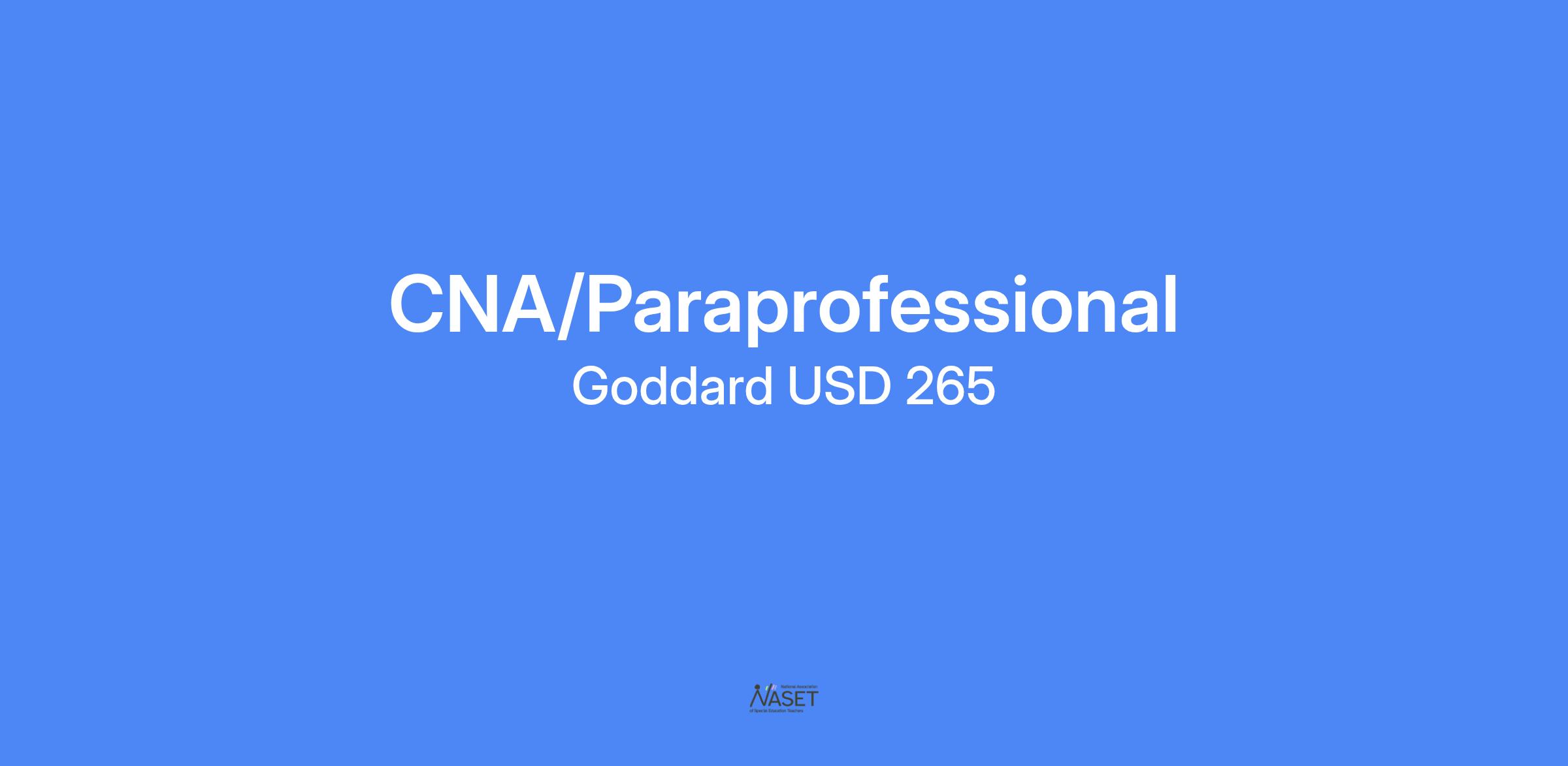 CNA/Special Education Paraprofessional at Eisenhower High School: Eisenhower High School has openings for a CNA that will also fulfill duties as a special education paraprofessional. The CNA/paraprofessional will provide student support in the classrooms and medical support to their assigned students. Interested applicants will need to complete an on-line application at https://www.applitrack.com/goddardusd/online All inquiries should be directed to Travis Rink, Eisenhower High School Assistant Principal, at trink@goddardusd.com. Position open until filled.