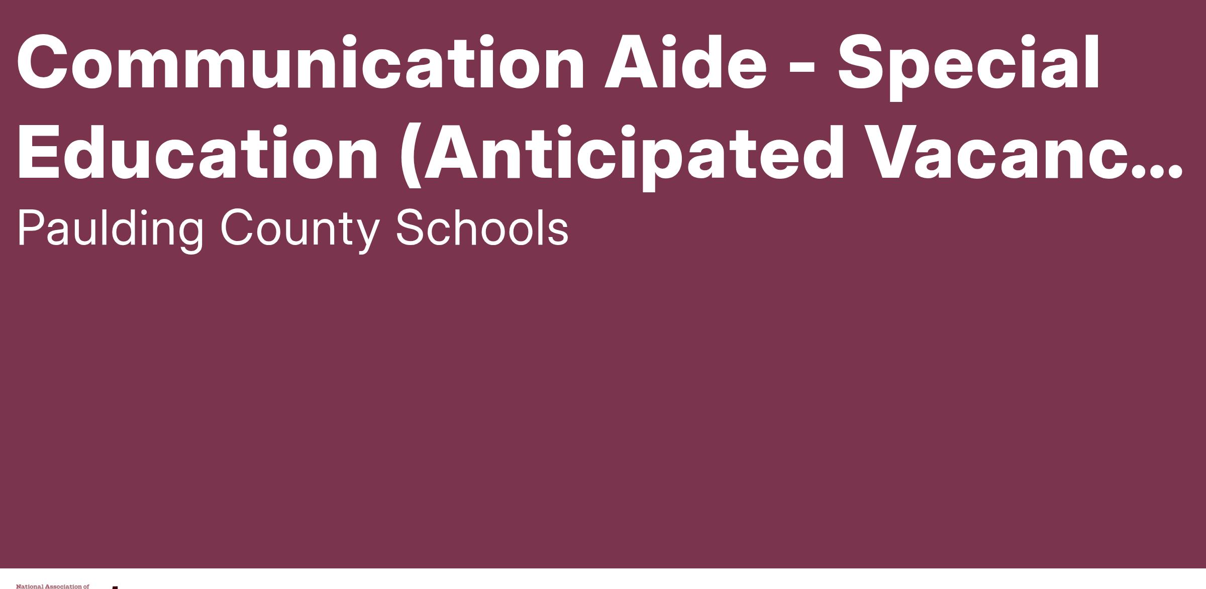 Thank you for your interest in our Communication Aide - Special Education position