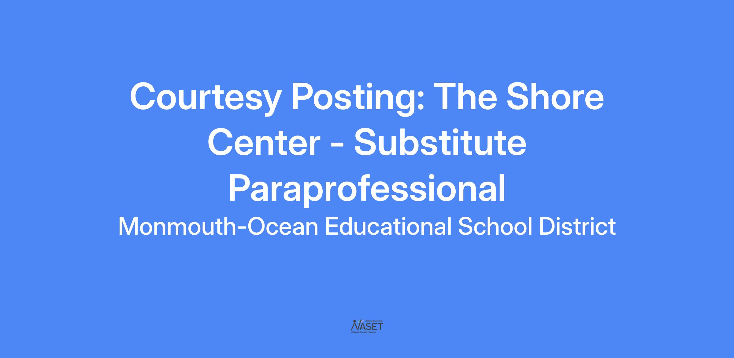 The Shore Center, a public school for children with autism, is seeking qualified candidates for the position of Substitute Special Education Paraprofessionals for the 2025 -2026 school years.