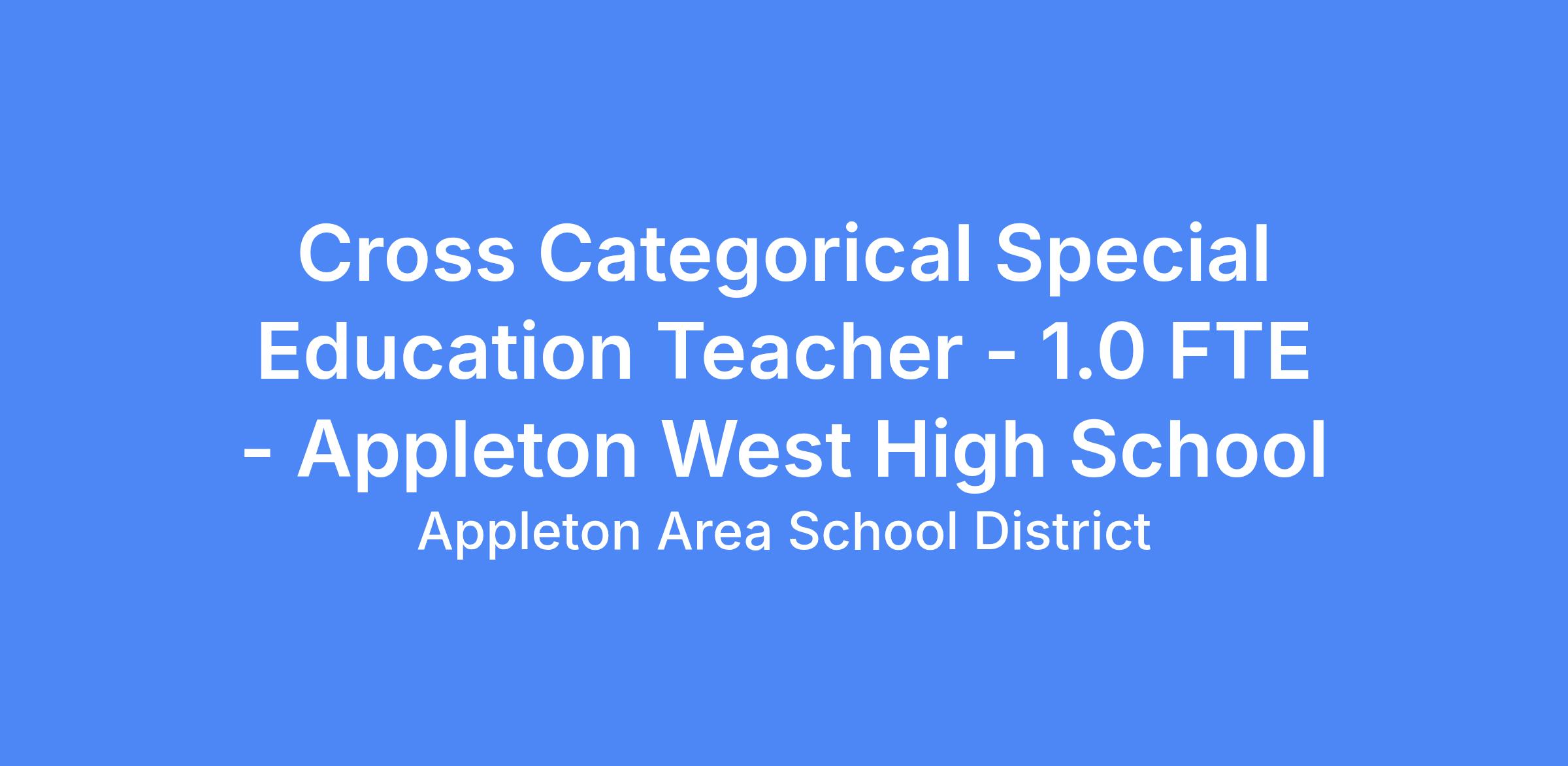The Appleton Area School District has a position available for a 1.0 FTE Cross Categorical Special Education Teacher at West High School beginning on 08/24/2026.