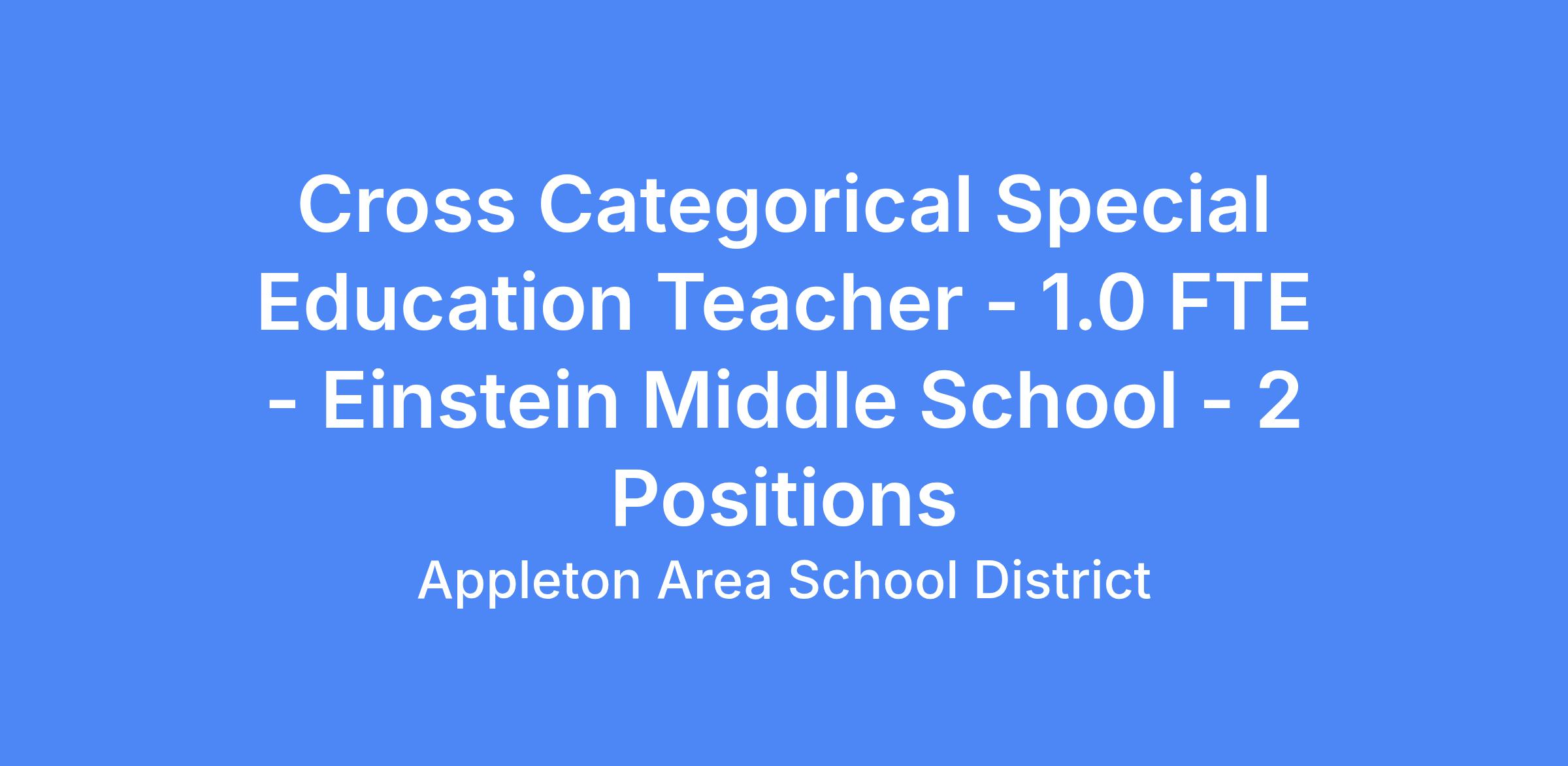 The Appleton Area School District has a 2 positions available for a 1.0 FTE Cross Categorical Special Education Teacher at Einstein Middle School beginning on 8/24/26.