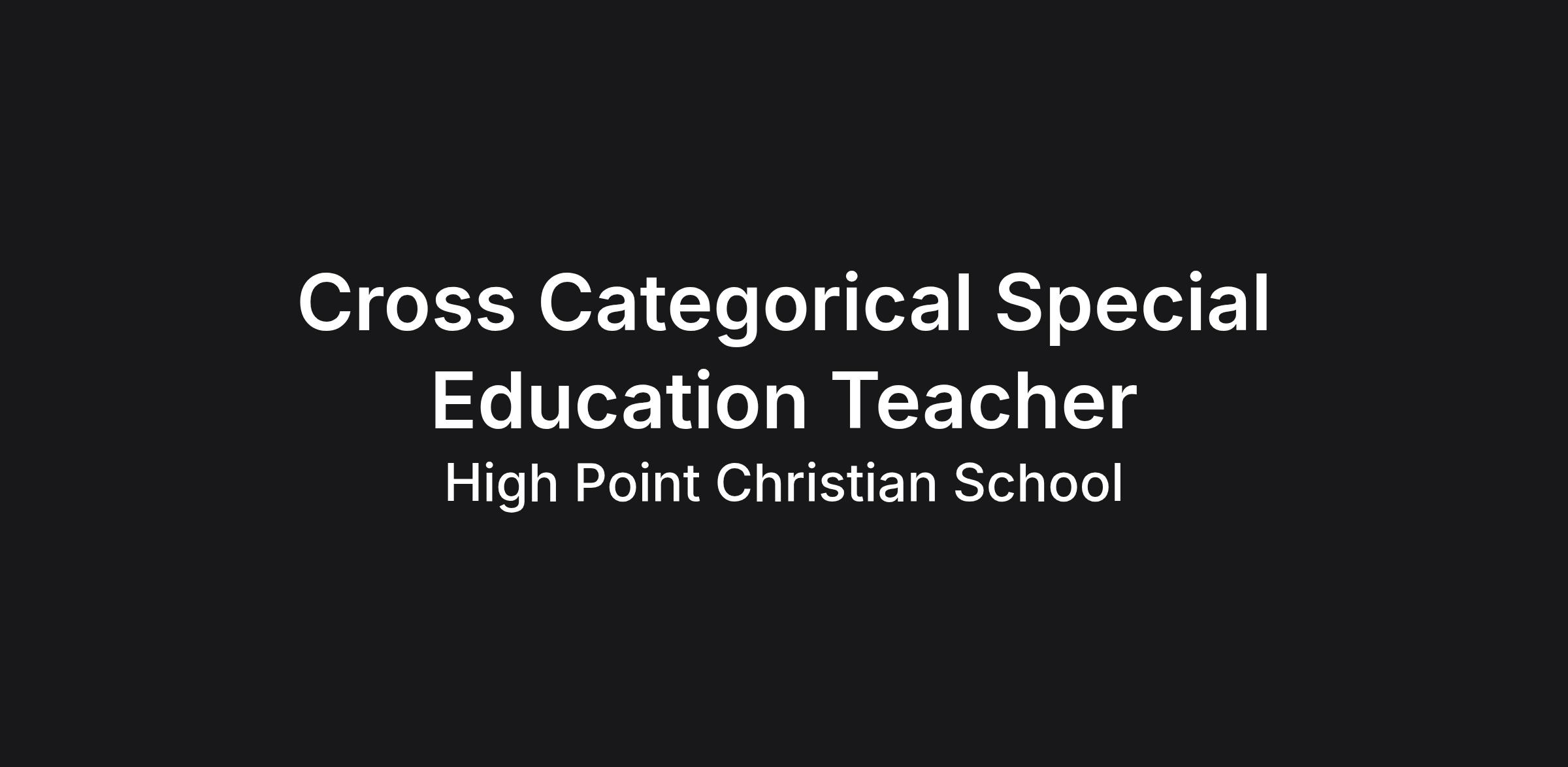 VACANCY DESCRIPTION: High Point Christian School (HPCS) is seeking a Cross Categorical Special Education Teacher to serve for the 2026-27 school year. The ideal candidate will prayerfully and skillfully develop students' attitudes, skills, and subject competencies that will contribute to their spiritual development as mature, able, and responsible Christians. The Cross Categorical Special Education Teacher would do this with their focus being on supporting students with special needs and/or additional educational support.