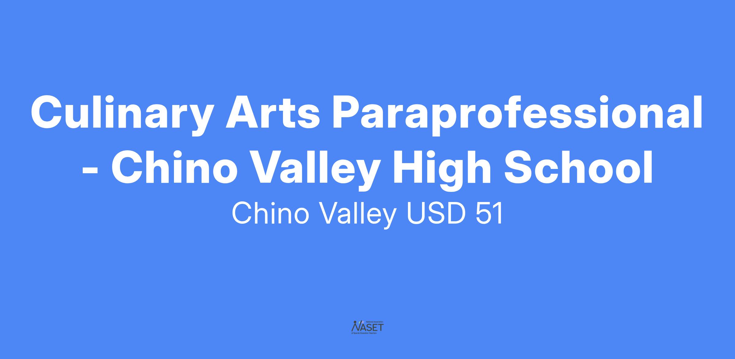 Seeking one (1) part-time (16 hours per week) Culinary Arts Paraprofessional at Chino Valley High School. The Chino Valley Unified School District is on a 4 –day work week Monday through Thursday.