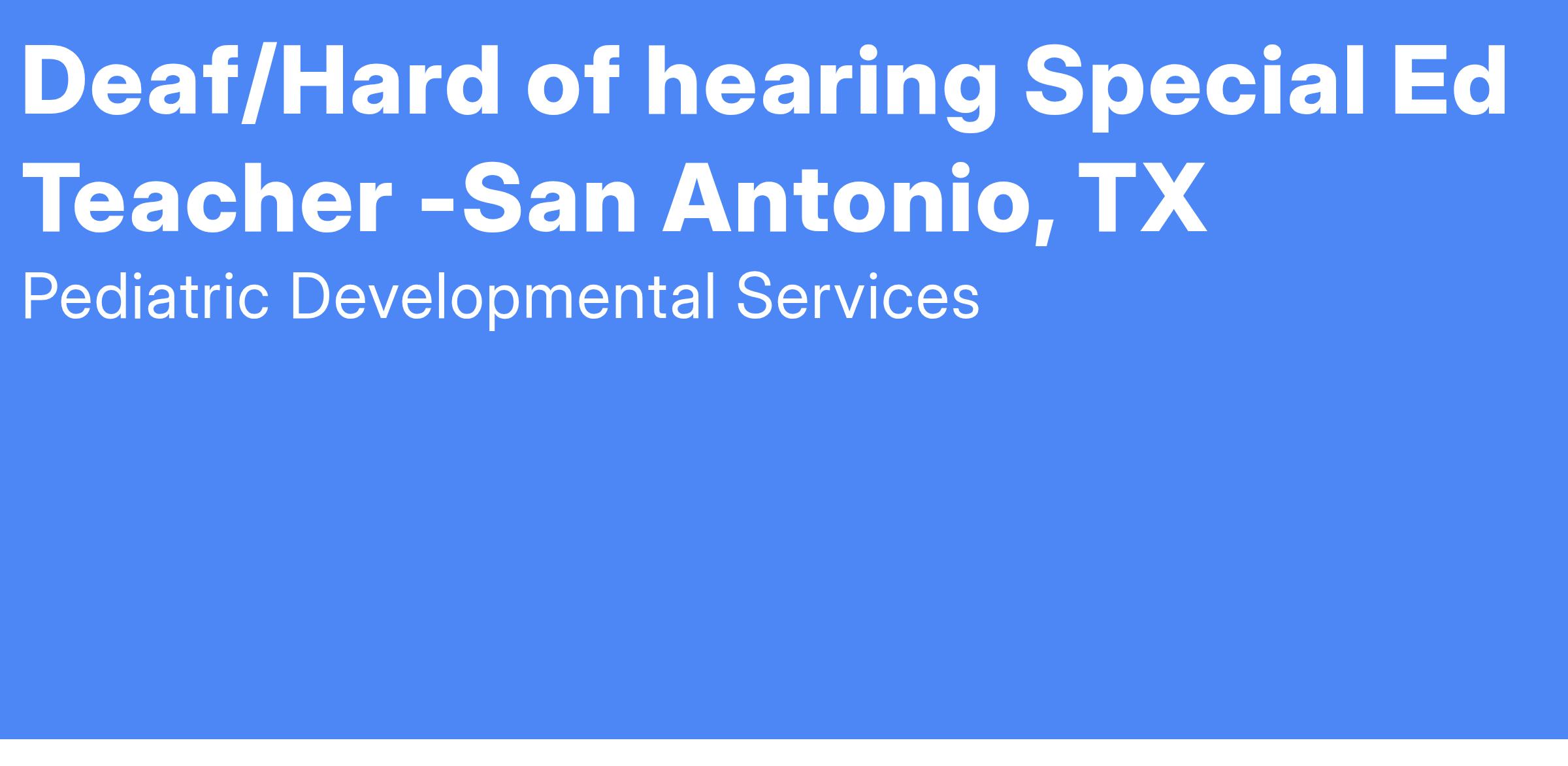 Pediatric Developmental Services (PDS) is looking to hire a Deaf/Hard of Hearing Teacher to join our staff and work in an amazing school! Are you passionate about helping all students reach their potential? Do you love working in a bright, active, positive environment? Are you interested in joining an organization devoted to helping all children succeed? If so, we want to hear from you!