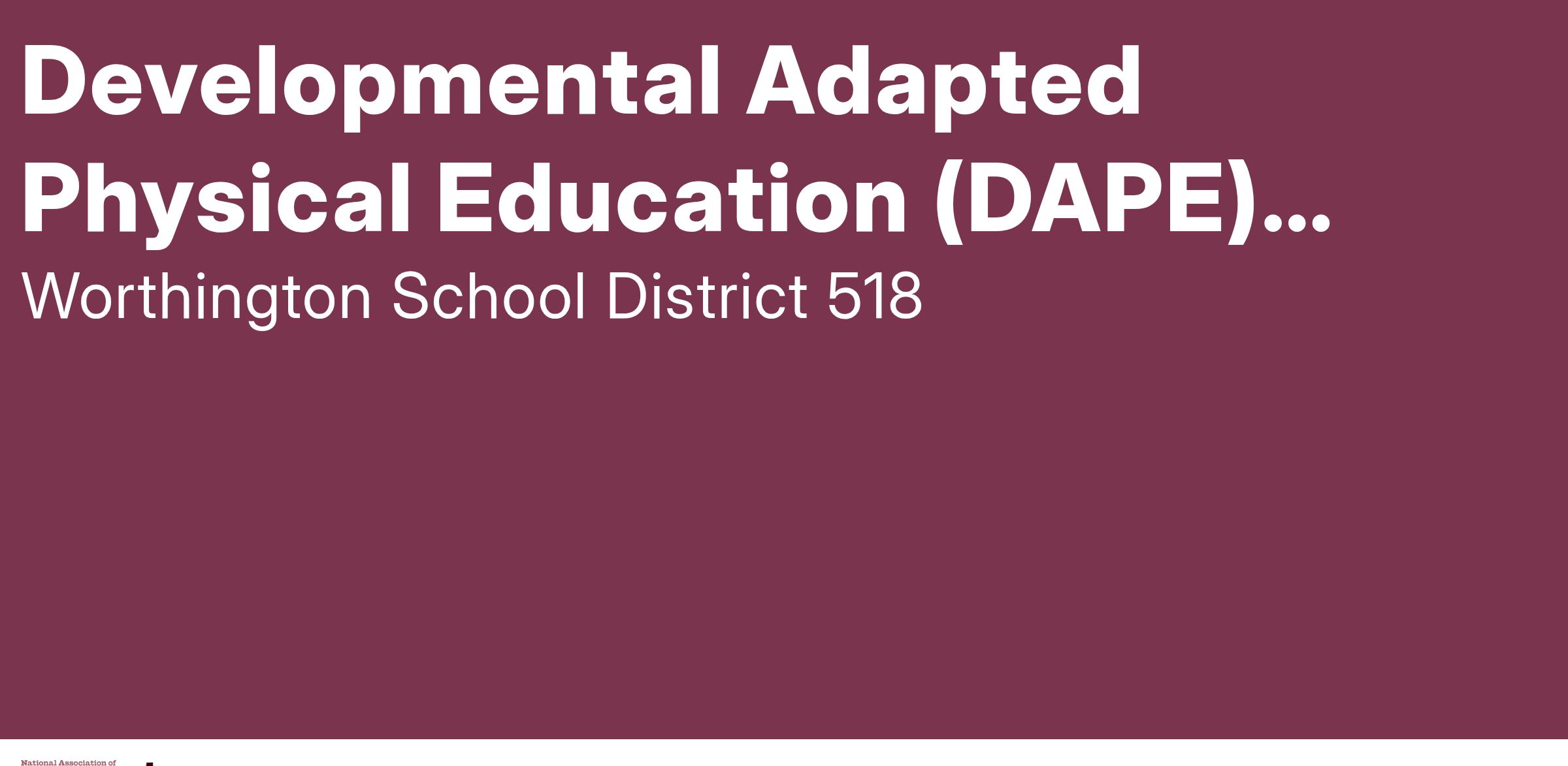 Developmental Adapted Physical Education (DAPE) Teacher - Job Description