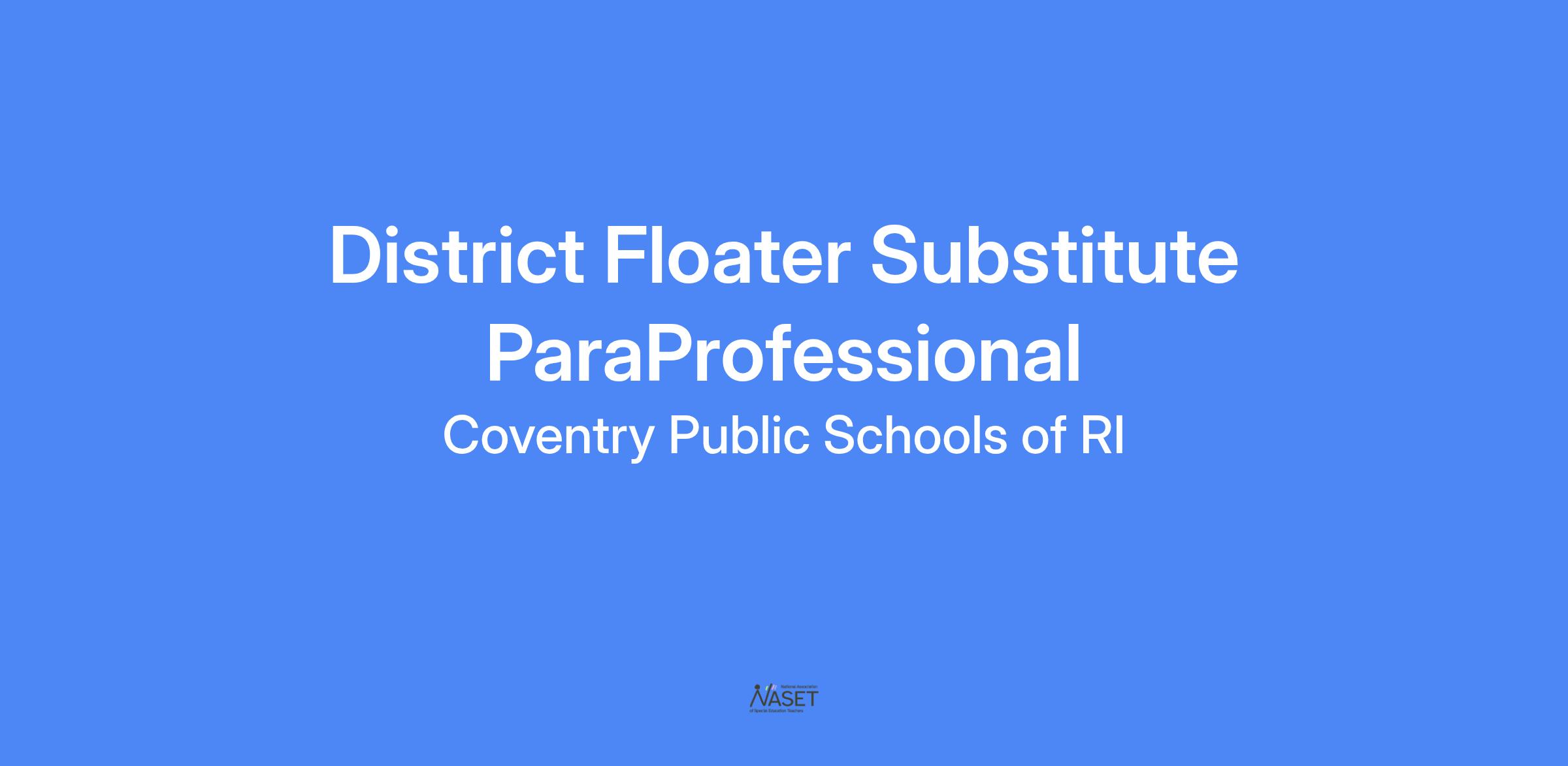 Coventry Public Schools is seeking to hire a District Floater Substitute ParaProfessional. Coventry Public Schools provide a high quality, standards-based education for all students in an environment based upon respect, trust, and ethical and responsible behavior. Coventry Public Schools provide an environment where students are meeting and exceeding standards in an atmosphere that fosters and values individual talents. All members of our school community are full participants in the evaluation of their performance with the single aim of improvement.