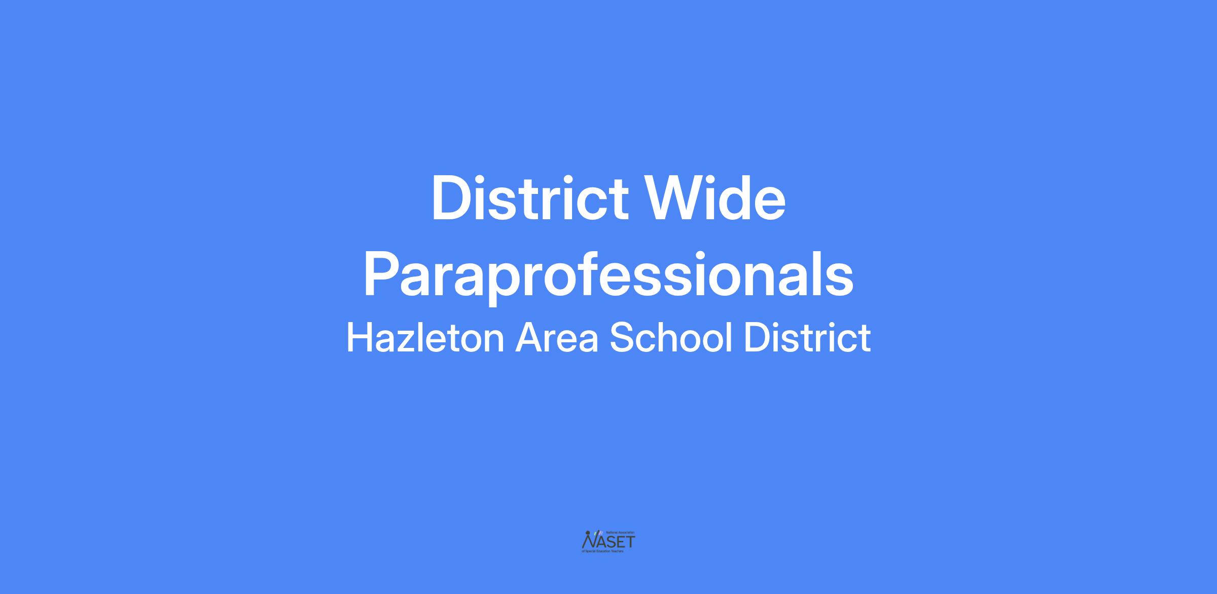 The Hazleton Area School District is currently seeking applications, letters of interest and resumes for the following Special Education Paraprofessional positions. Salary / Hourly Rate as per Collective Bargaining Agreement between the Hazleton Area School District and Hazleton Area Education Support Professional Association.