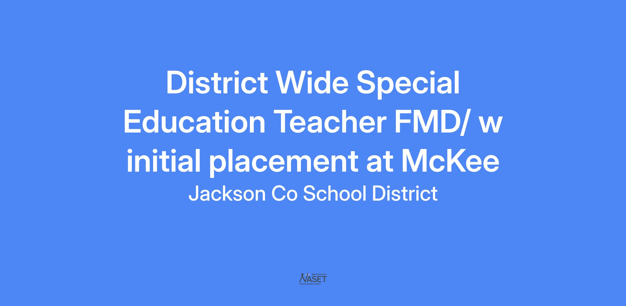 District Wide Special Education Teacher FMD/ w initial placement at McKee