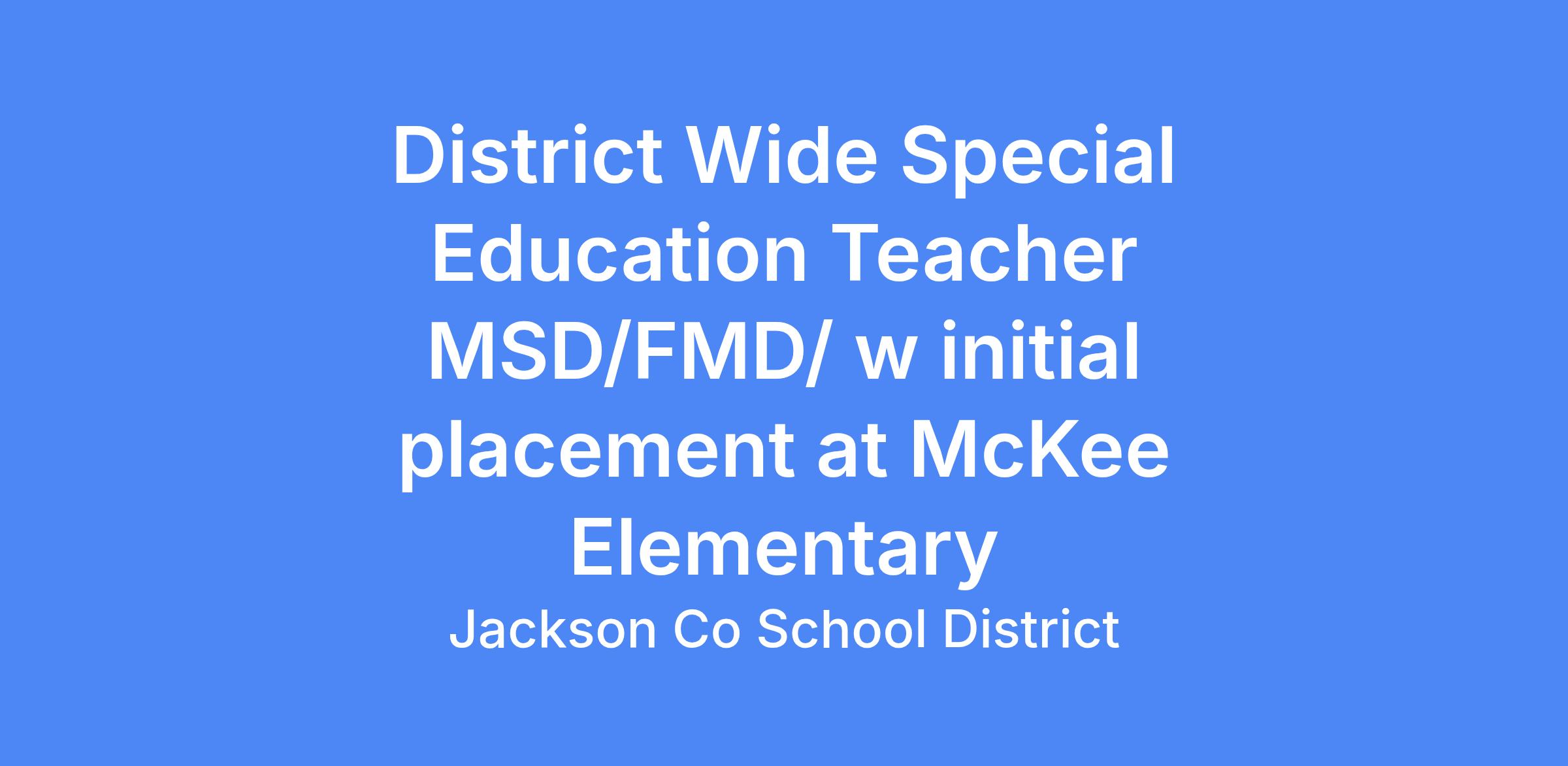 District Wide Special Education Teacher MSD/FMD/ w initial placement at McKee Elementary