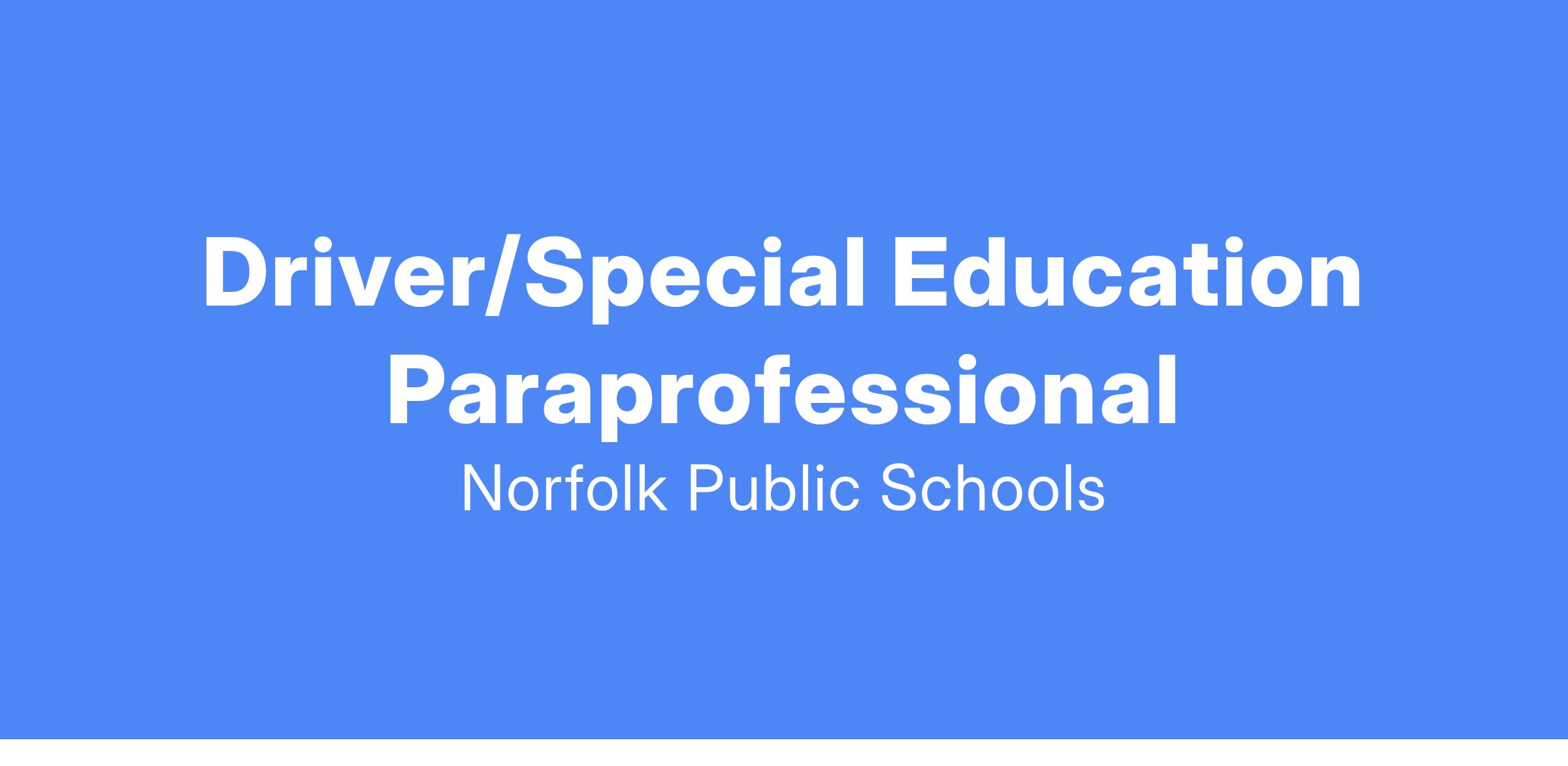JOB TITLE: Driver/Special Education Paraprofessional