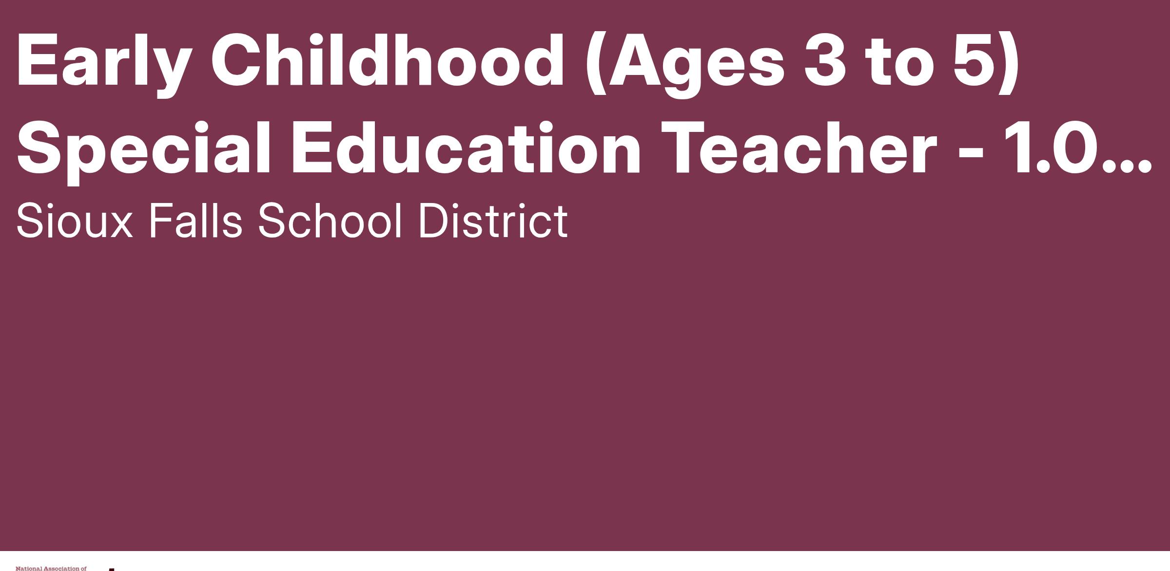 View the complete job description here: Early Childhood Special Education Teacher (Non-Classroom)