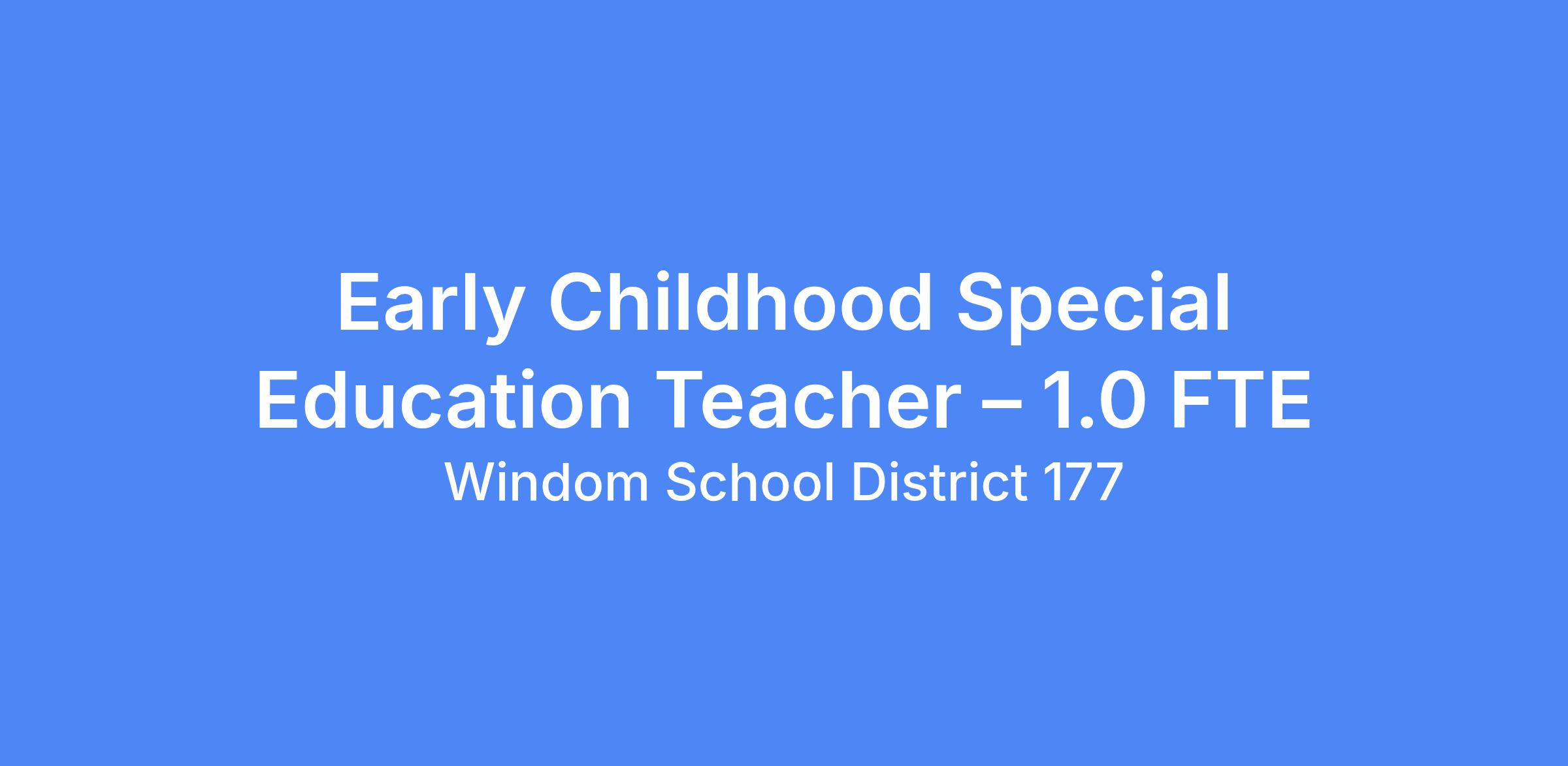 Early Childhood Special Education Teacher � 1.0 FTE