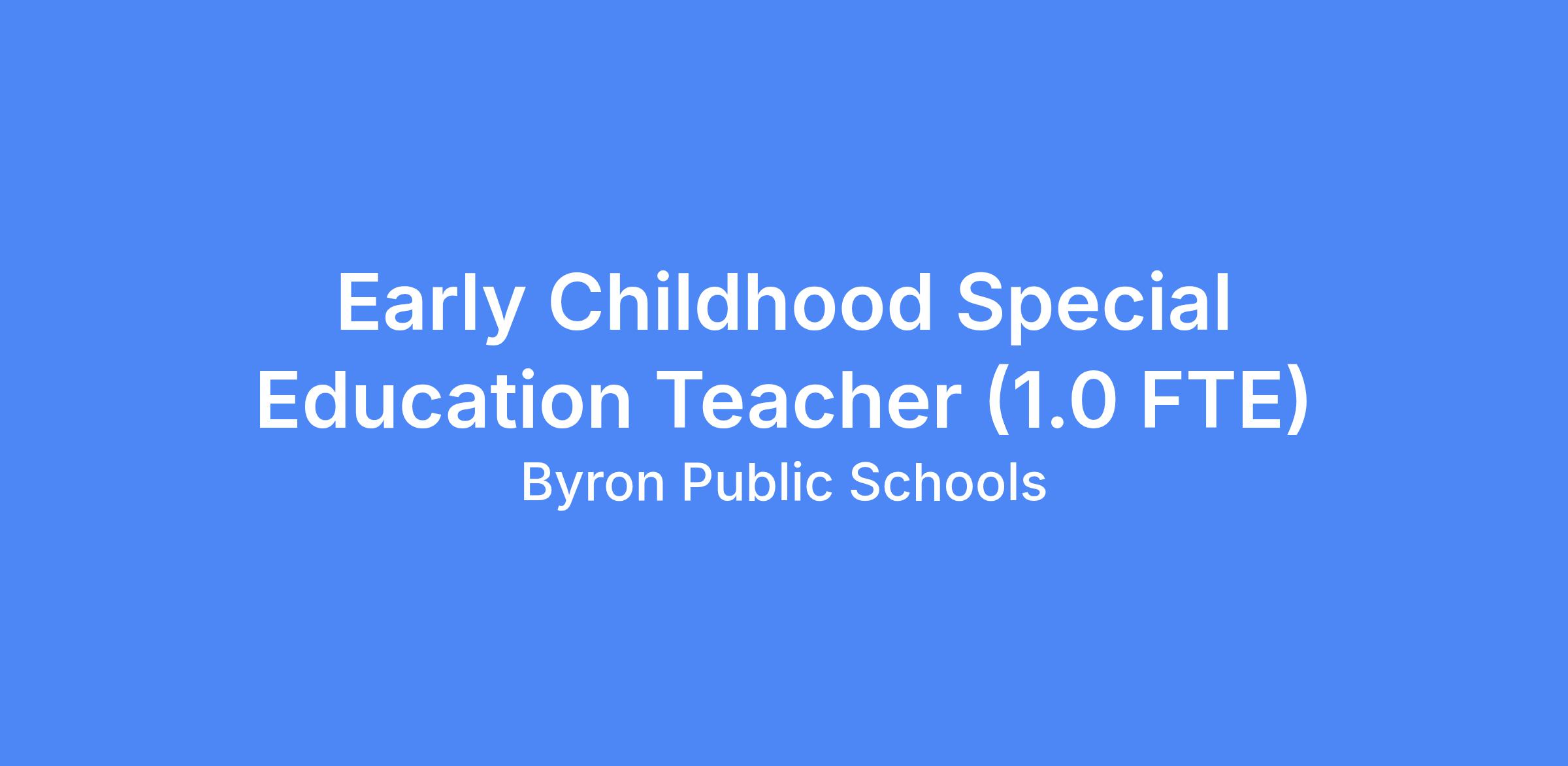 Byron Public Schools is accepting applications for a full time (1.0 FTE) special education position in our Early Childhood Special Education setting. Special Education teachers with licensing in the area of Early Childhood Special Education preferred, other licensing areas will be considered. This position will begin August 25, 2026. Please direct questions to Marie Kennedy, Special Education Director at 507-624-0355 or marie.kennedy@byron.k12.mn.us. Applications are being accepted online at:http://bit.ly/byron-employment Position is open until filled and after a review and interviews of qualified applicants.