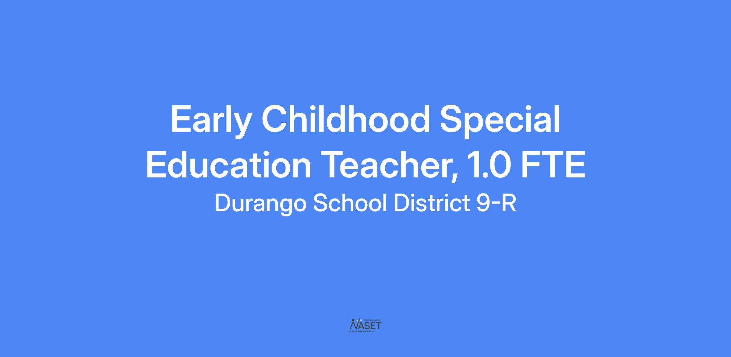 Durango School District 9-R is accepting applications for an Early Childhood Special Education Teacher. Must meet Colorado Department of Education's ESSA requirements for In-Field Teacher in Early Childhood Special Education prior to starting in the position.