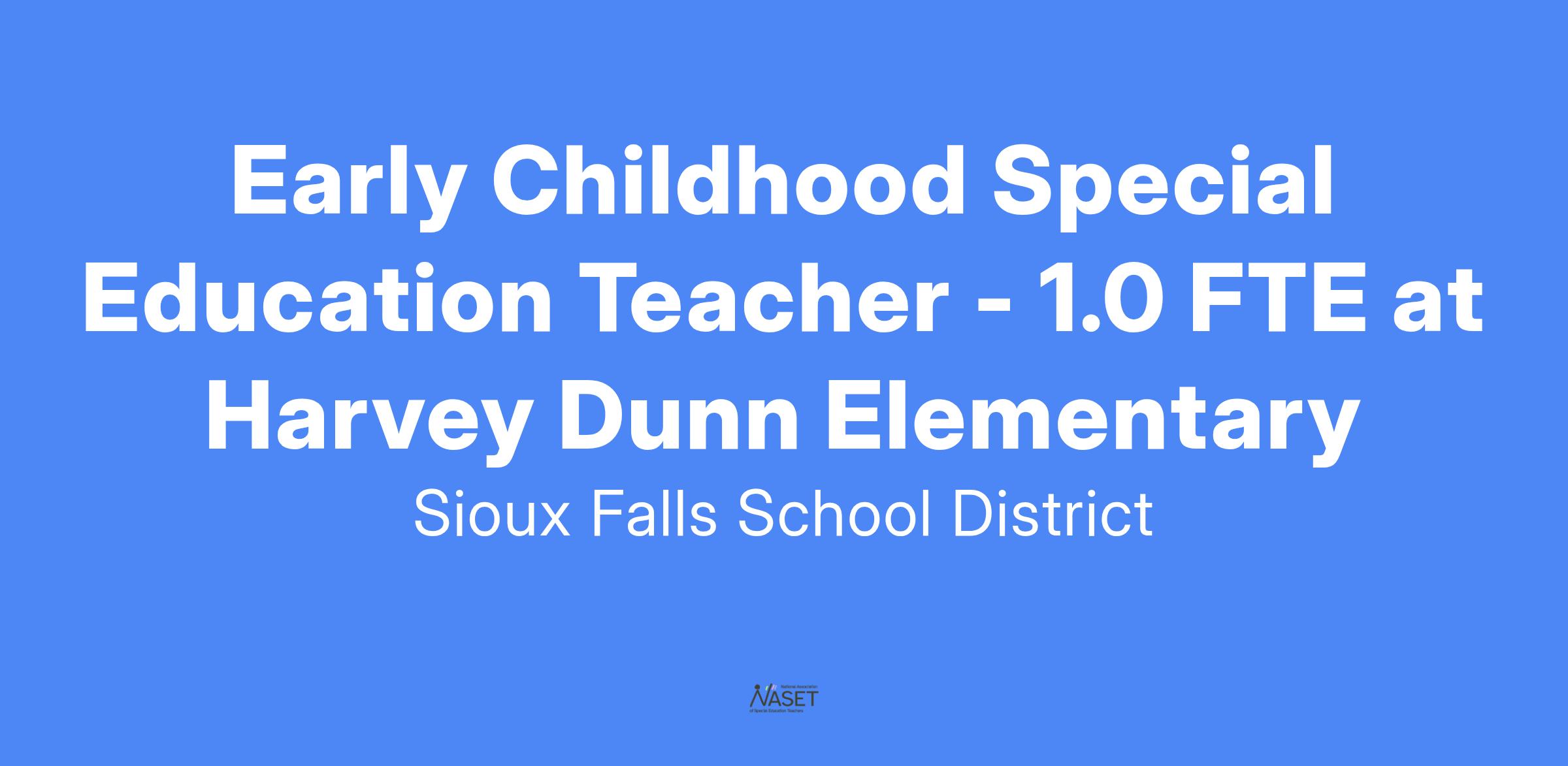 View the complete job description here: Early Childhood Special Education Teacher