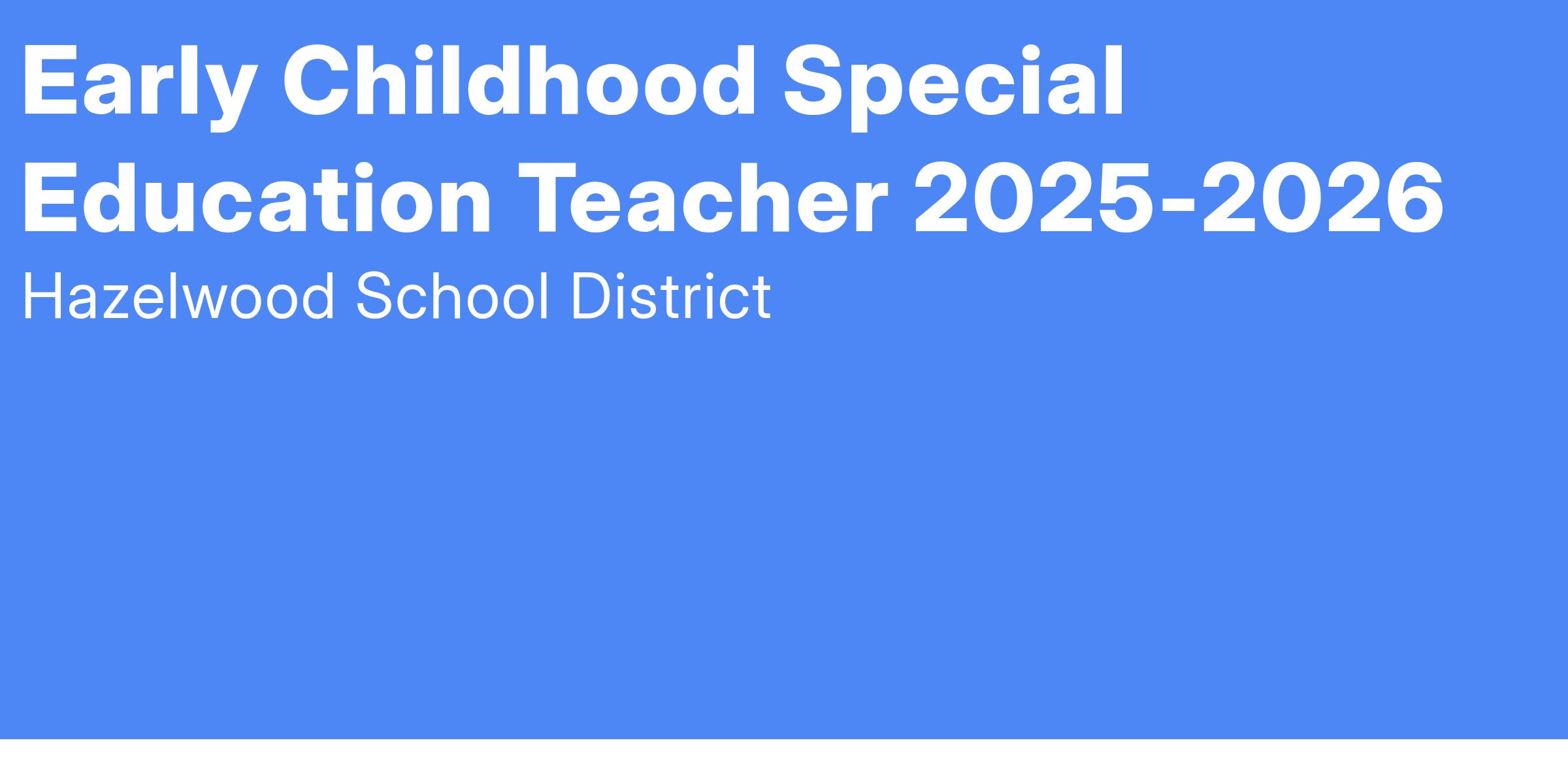 POSITION TITLE: Early Childhood Special Education Teacher