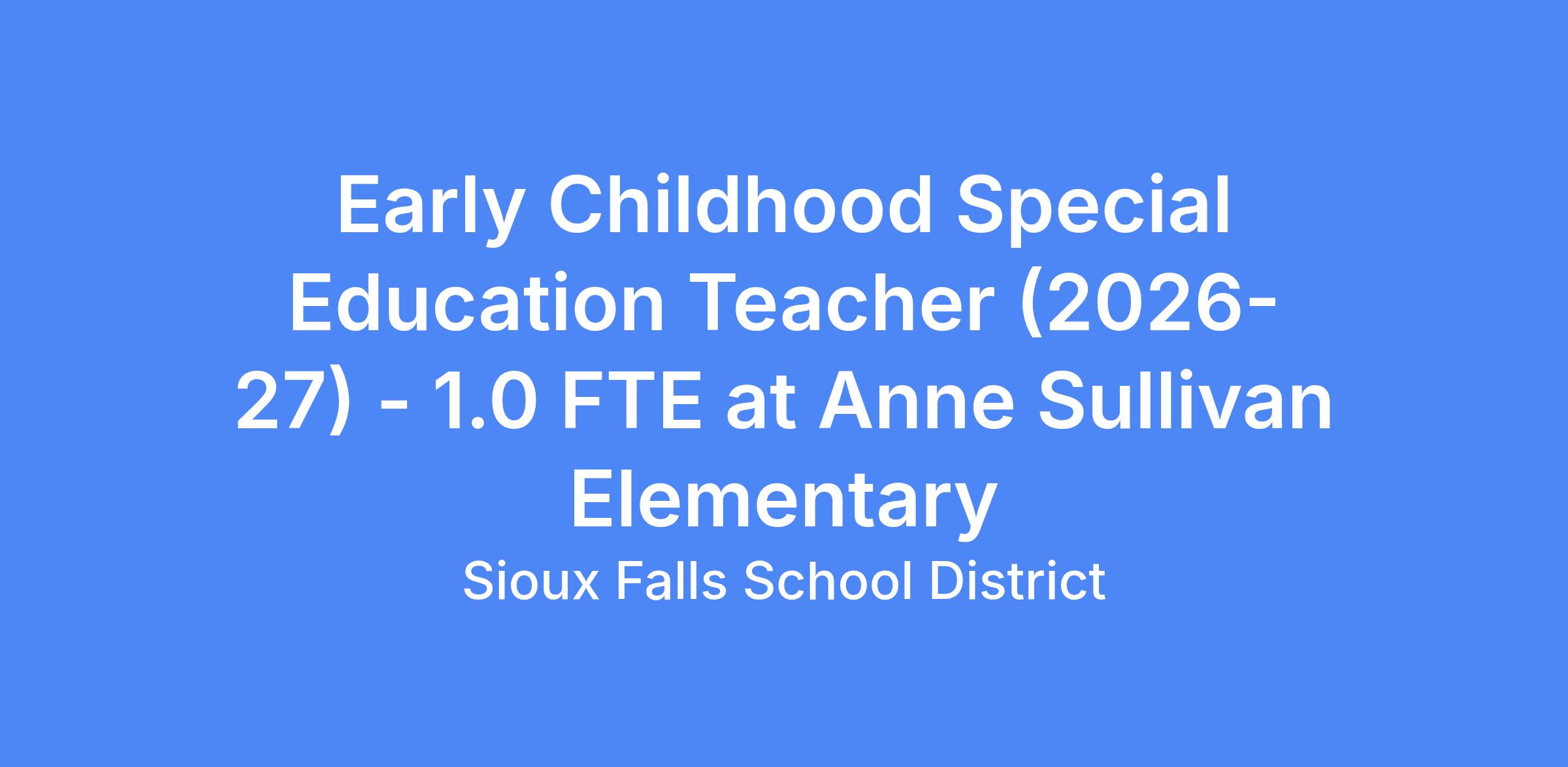 View the complete job description here: Early Childhood Special Education Teacher