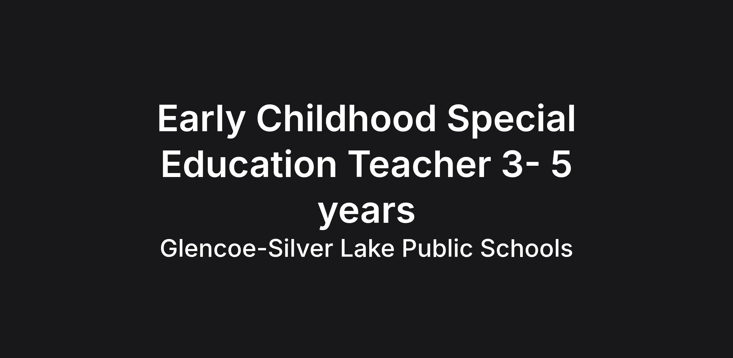 The Glencoe-Silver Lake School District is looking for an Early Childhood Special Education Teacher to work with our ECSE team in Glencoe to provide services to children ages 3- 5 years old.
