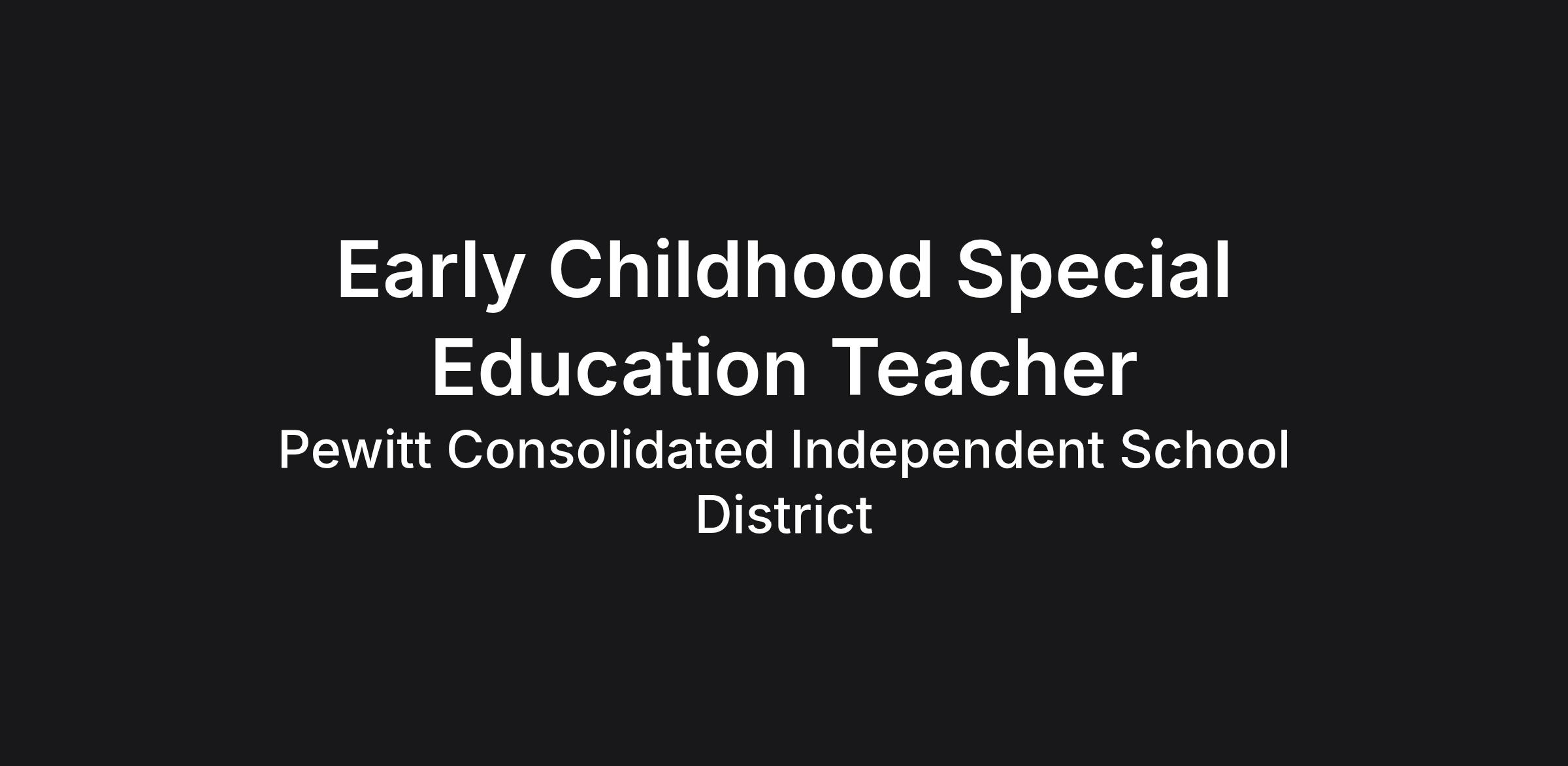 Position Title: Early Childhood Special Education Teacher (Ages 3-Early Elementary)