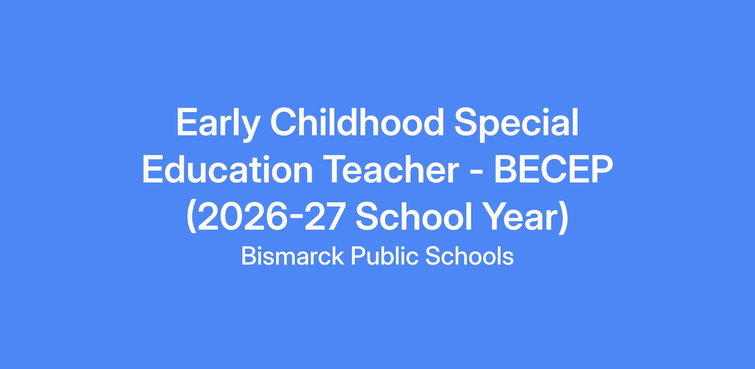 Bismarck Public Schools is accepting applications for an Early Childhood Special Education Teacher for the 2026-2027 School Year.