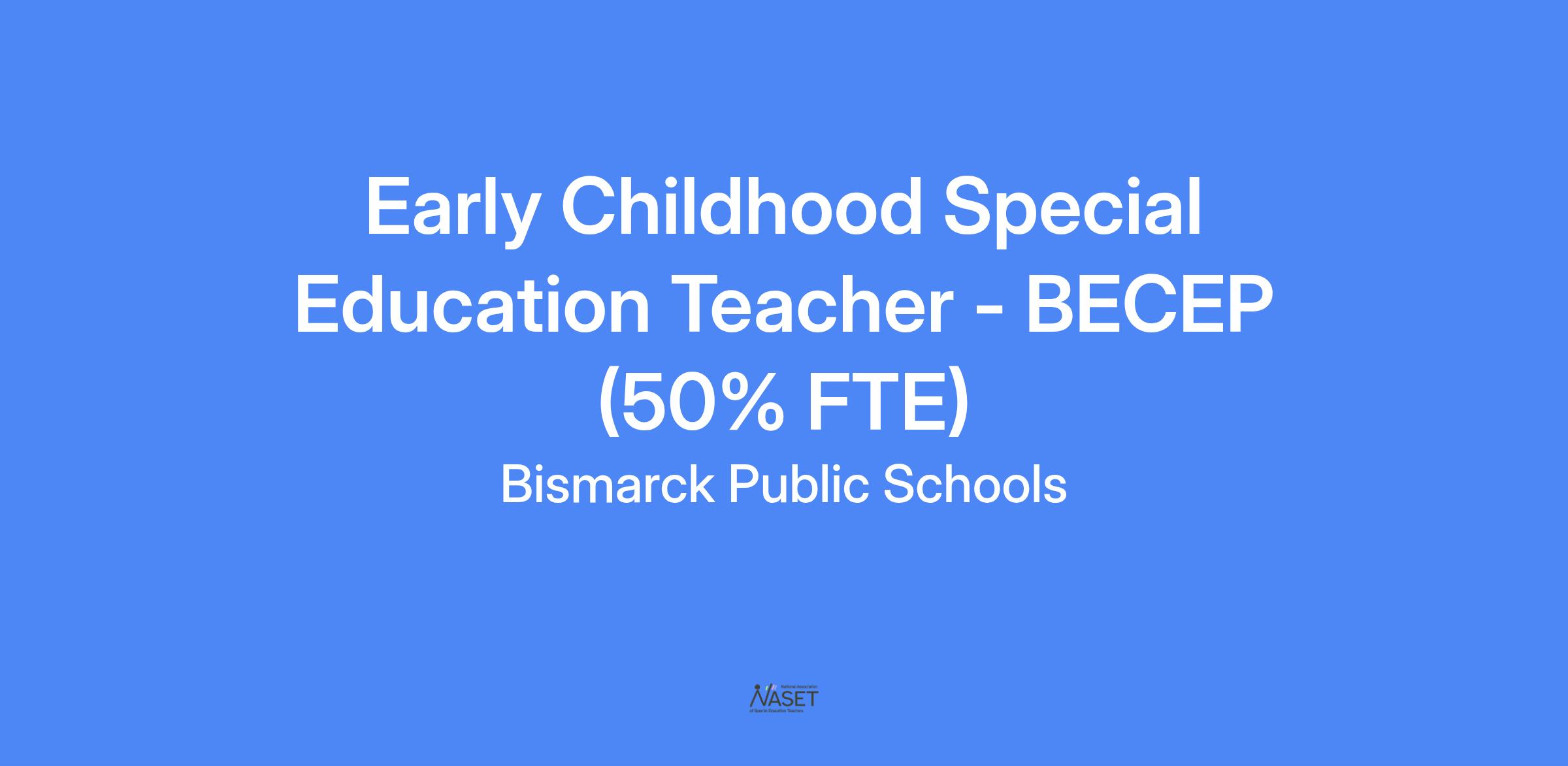Bismarck Public Schools is accepting applications for a part-time (.5) Early Childhood Special Education Teacher. This position is a one year contract working January of 2026 - May of 2026.