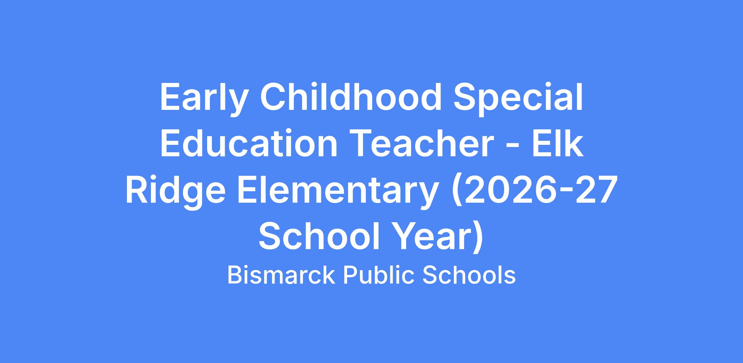 Bismarck Public Schools is accepting applications for an Early Childhood Special Education Teacher for the 2026-2027 School Year.