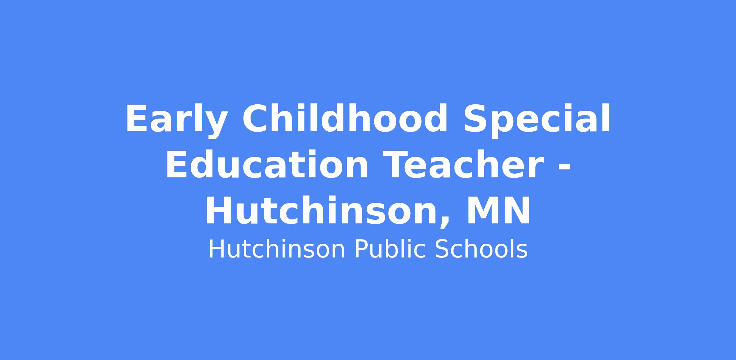 Hutchinson Public Schools is seeking an Early Childhood Special Education Teacher at West Elementary for the 2026-2027 school year and beyond.
