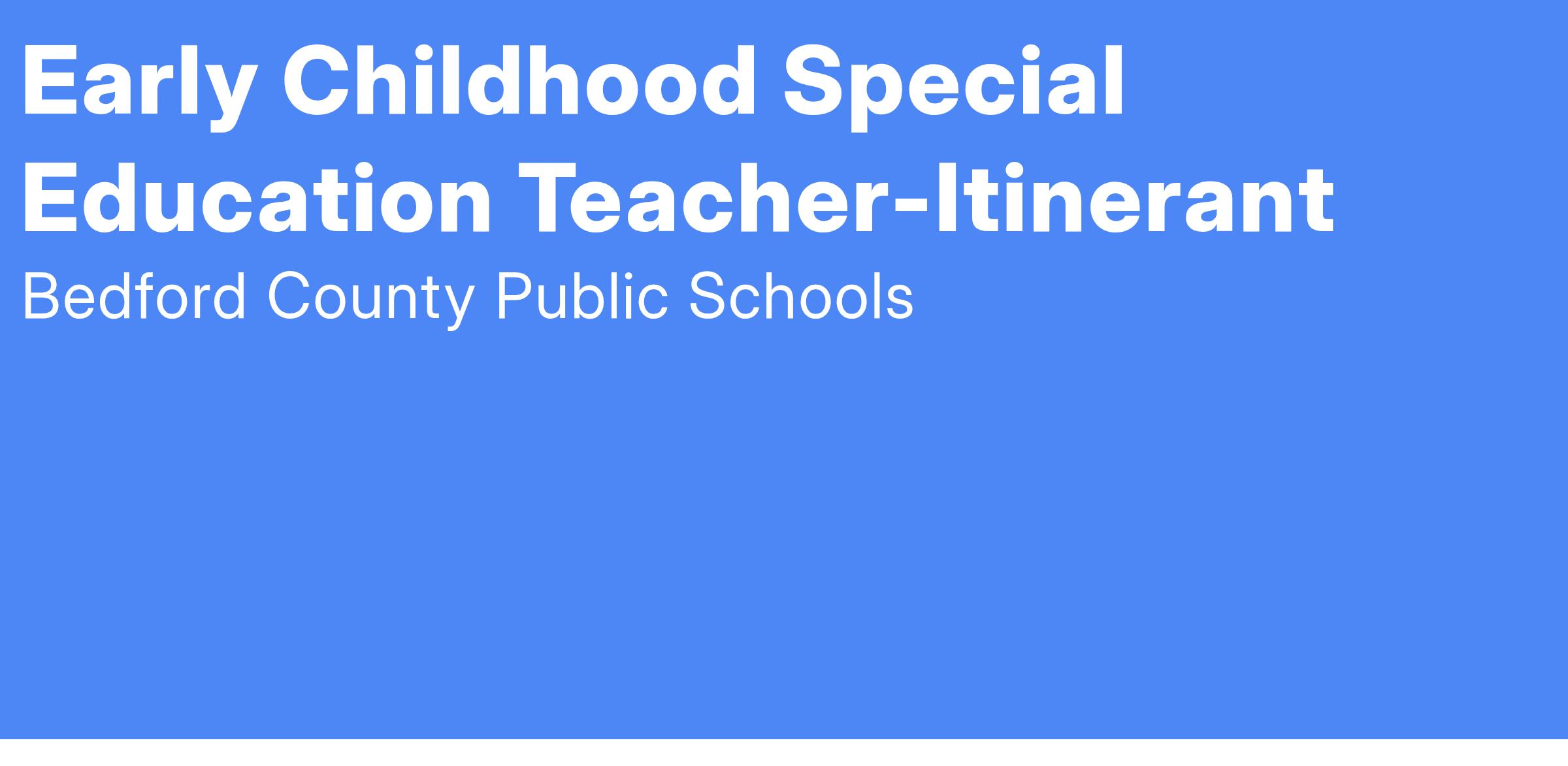 This job description in no way states or implies that these are the only duties to be performed by this employee. The Early Childhood Special Education Teacher will be required to follow any other instructions and to perform any other related duties as assigned by the Principal or appropriate administrator. Bedford County Public Schools reserves the right to update, revise or change this job description and related duties at any time.