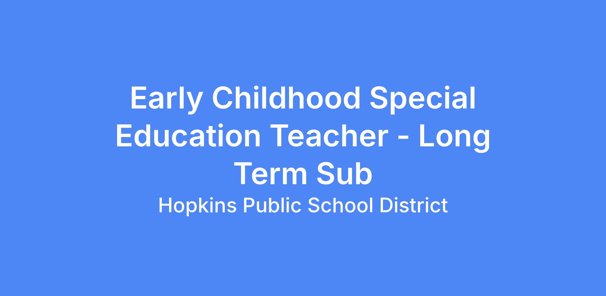 Early Childhood Special Education teaching opportunity at Harley Hopkins Family Center serving special education students ages 3 years to 5 years of age.