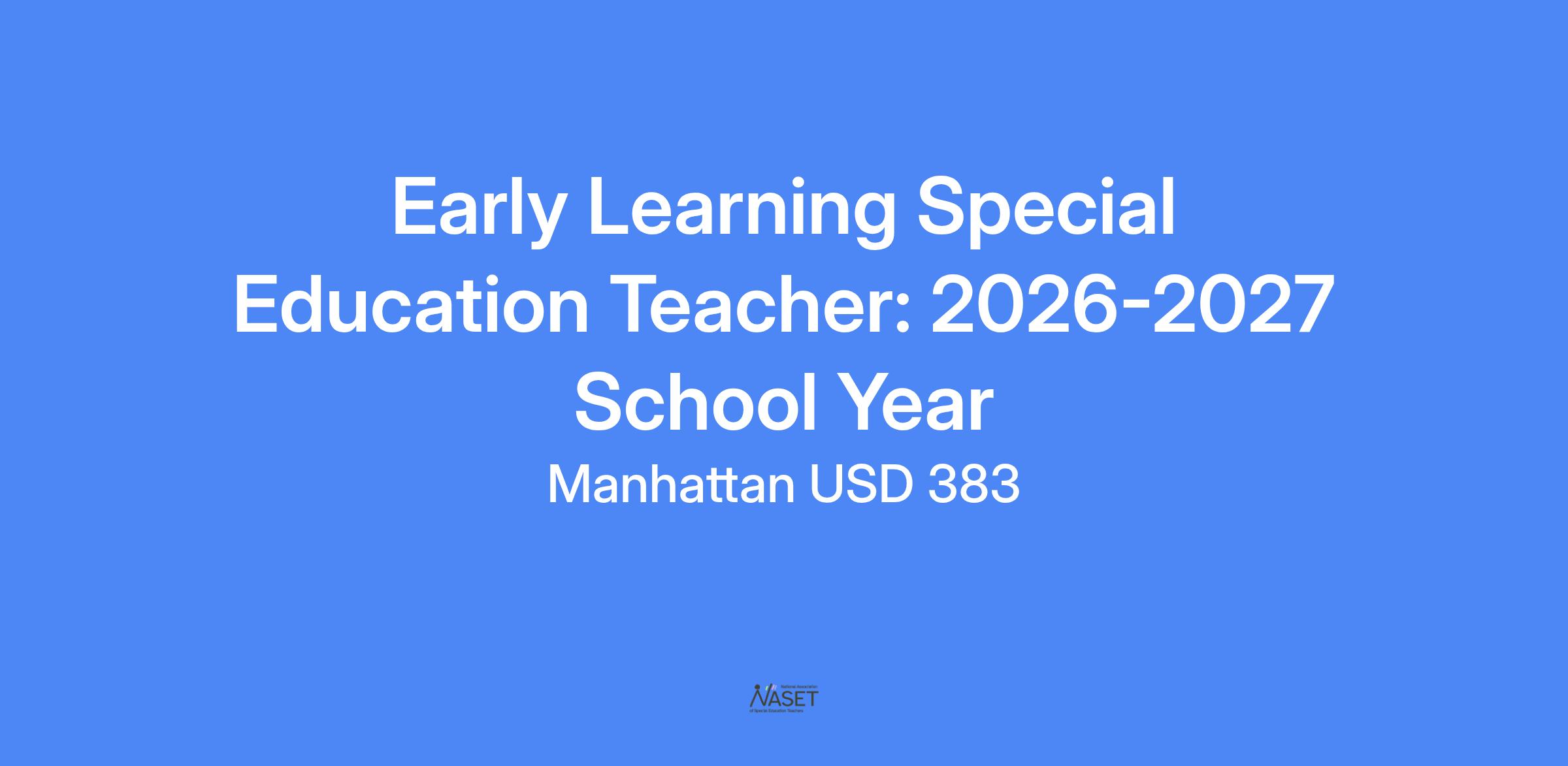 JOB TITLE: Early Learning Special Education Teacher